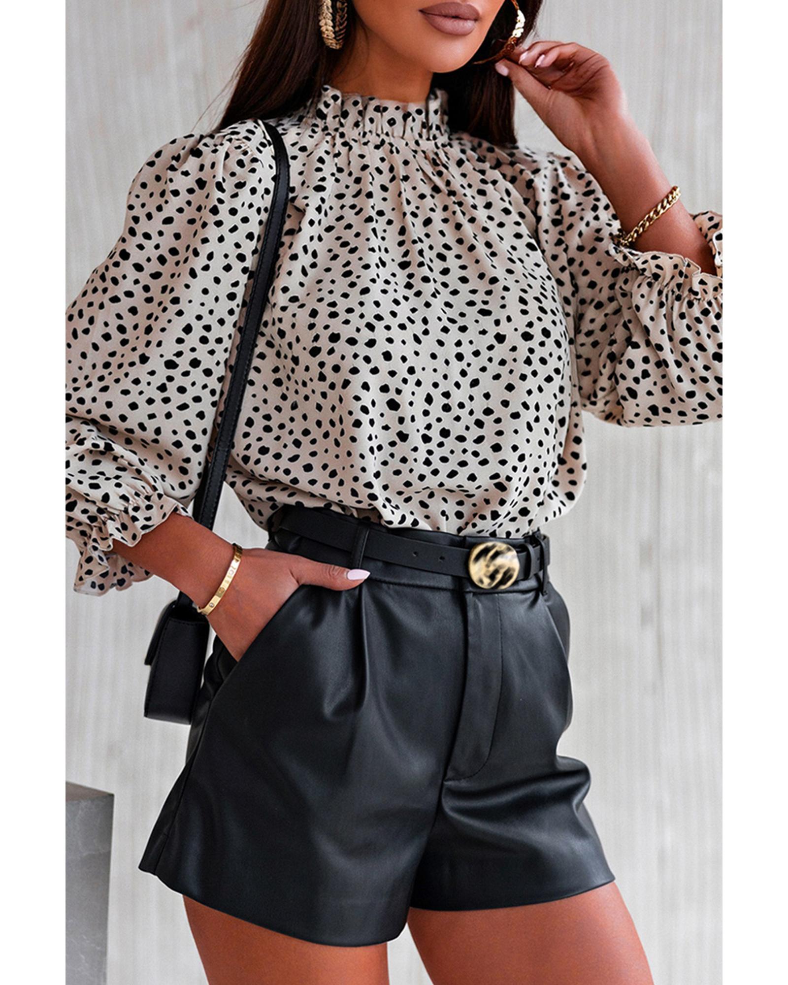 Azura Exchange Frilled Neck Cheetah Blouse – L