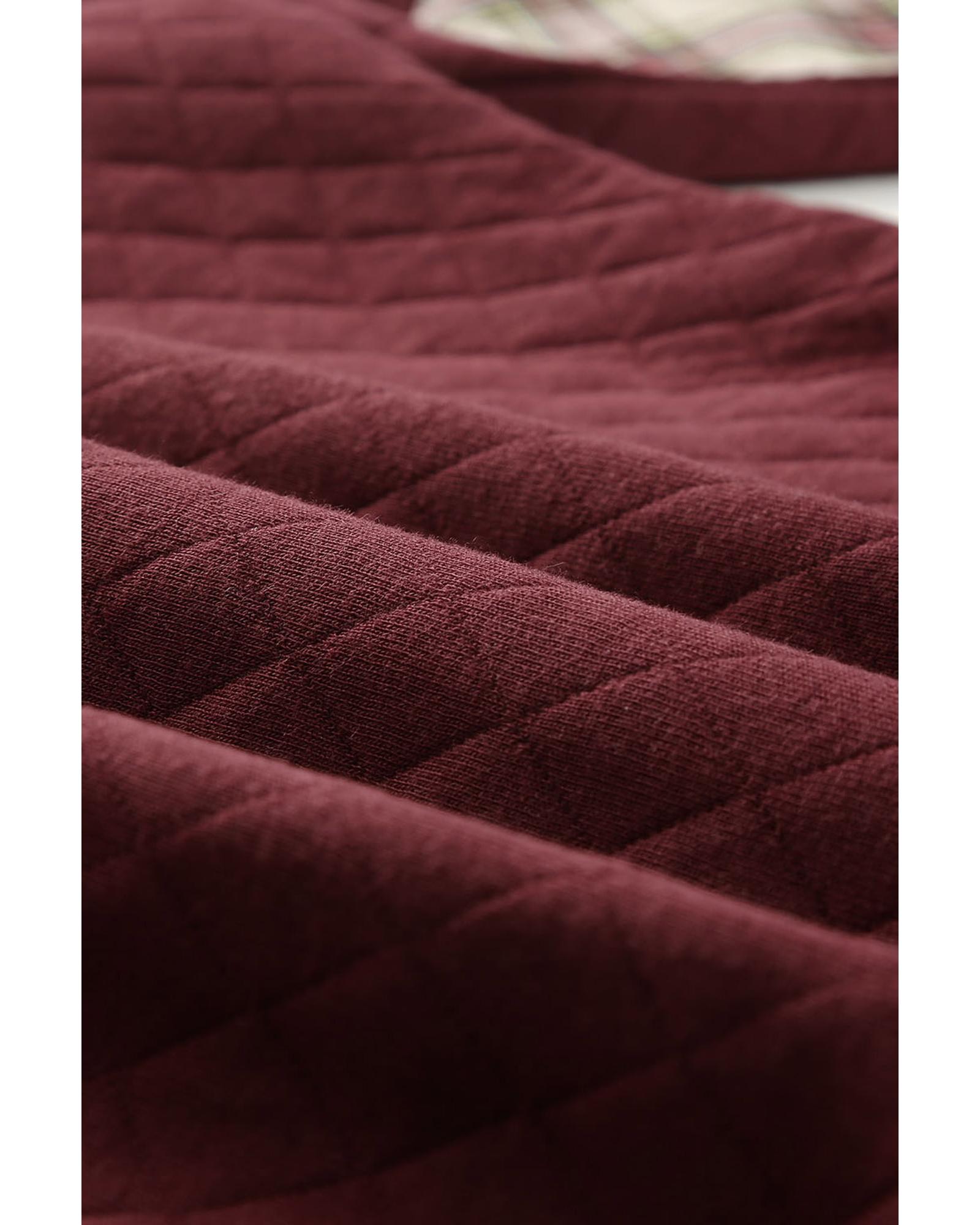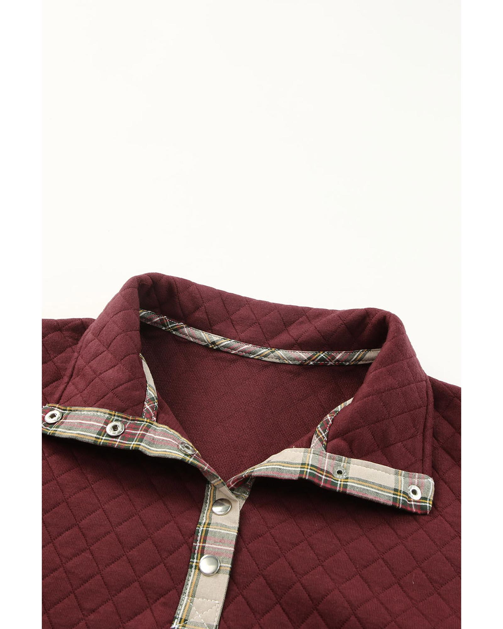 - Geometric Texture Plaid Trim Sweatshirt