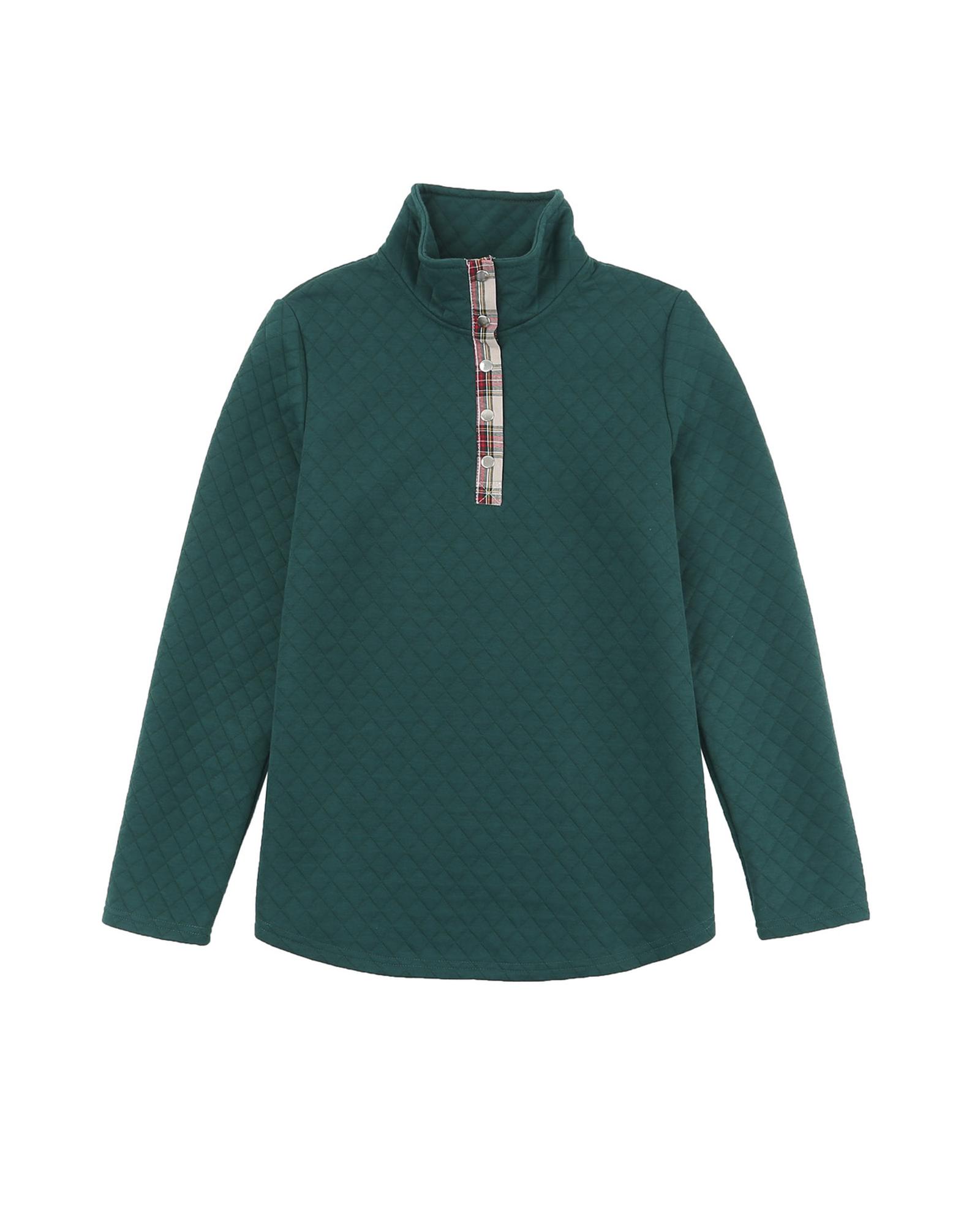 - Stylish Geometric Texture Plaid Trim Sweatshirt