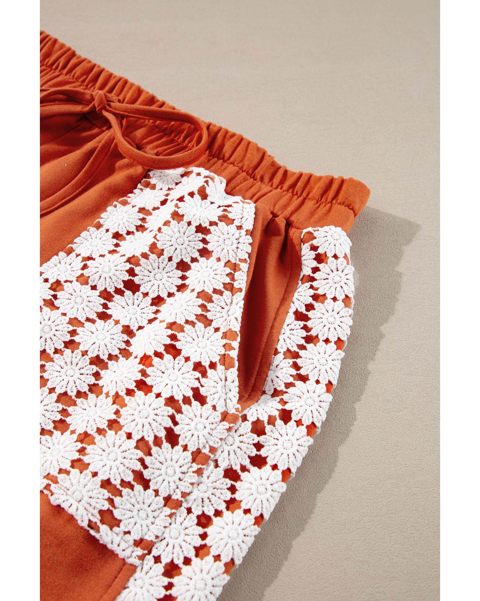 Azura Exchange Gold Flame Plus Size Floral Crochet Patch Drawstring Wide Leg Pants – 4X