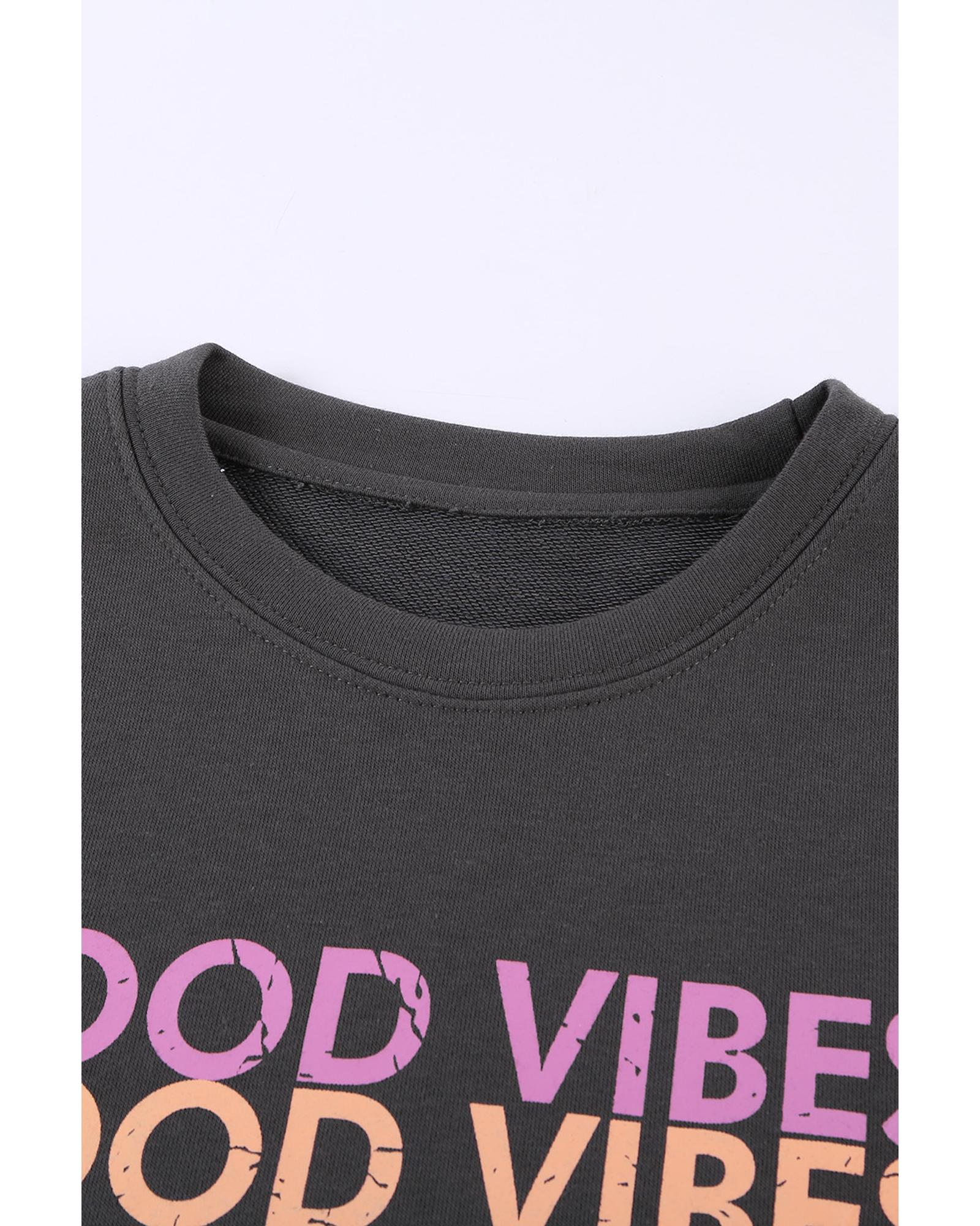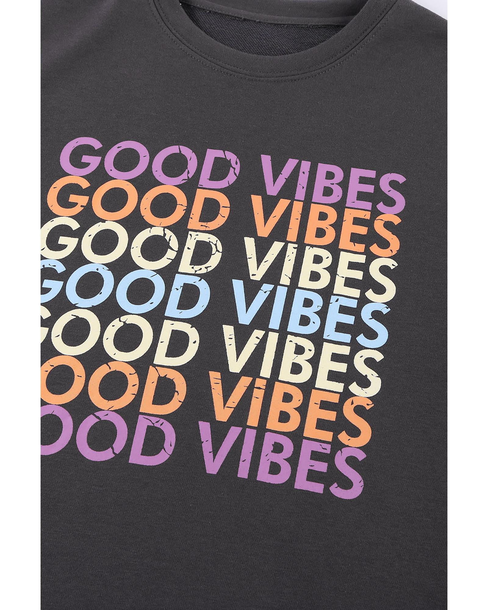 - Stay stylish and comfortable with this GOOD VIBES Graphic Pullover Sweatshirt