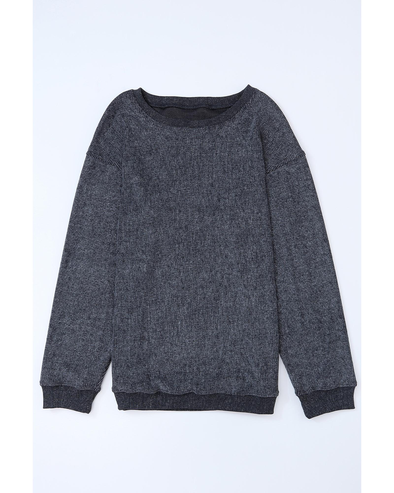 Azura Exchange Gray Ribbed Knit Round Neck Pullover Sweatshirt - 2XL