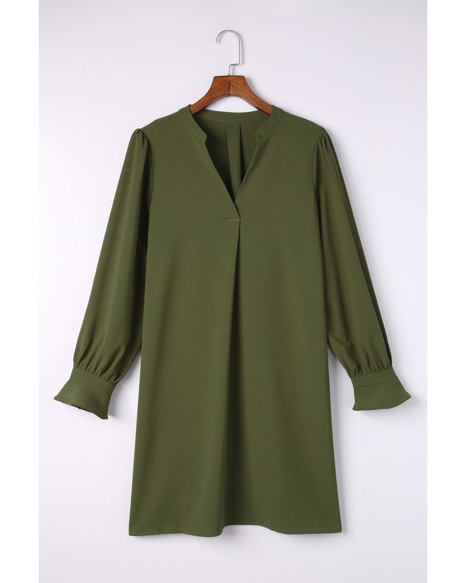 Azura Exchange Green Split V Neck Ruffled Sleeves Shirt Dress – L
