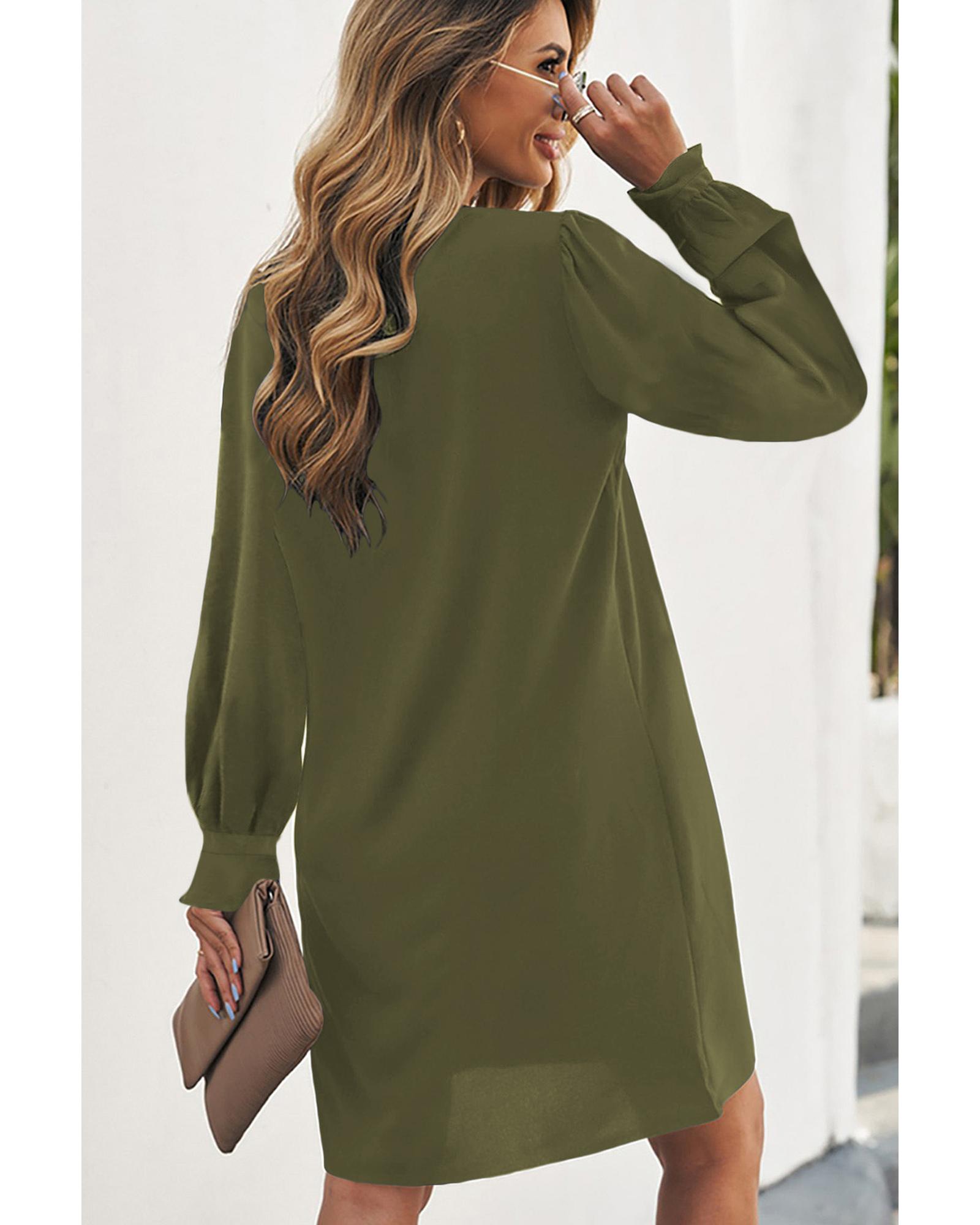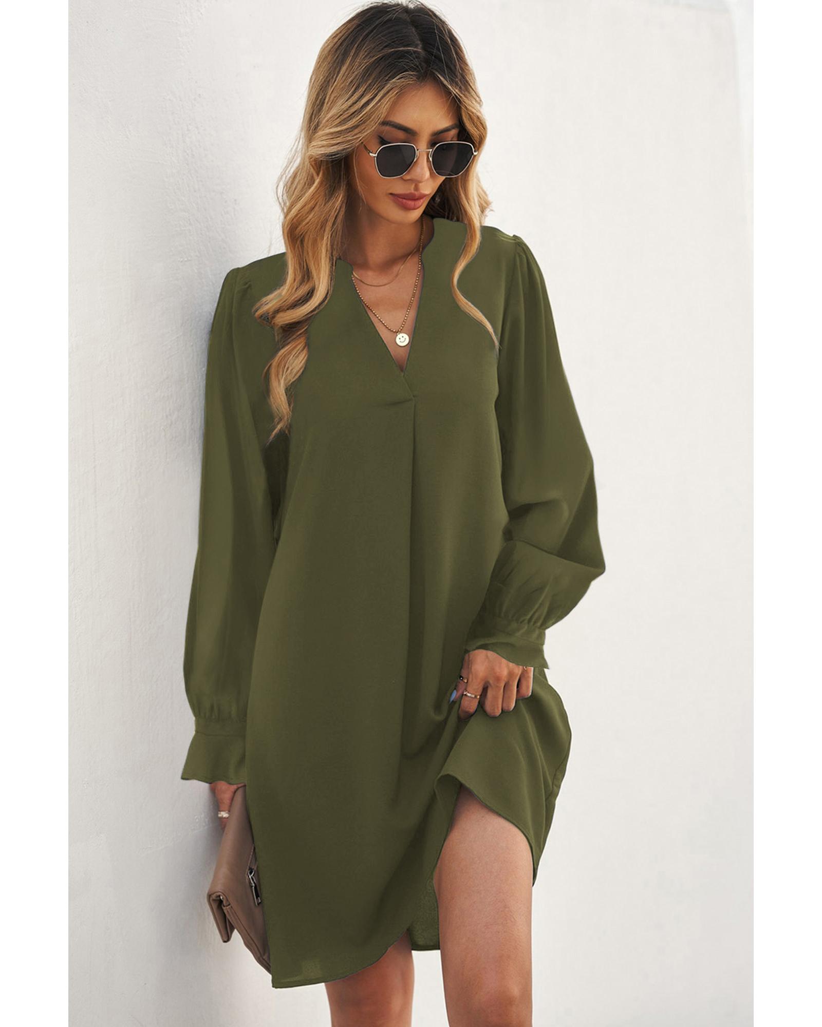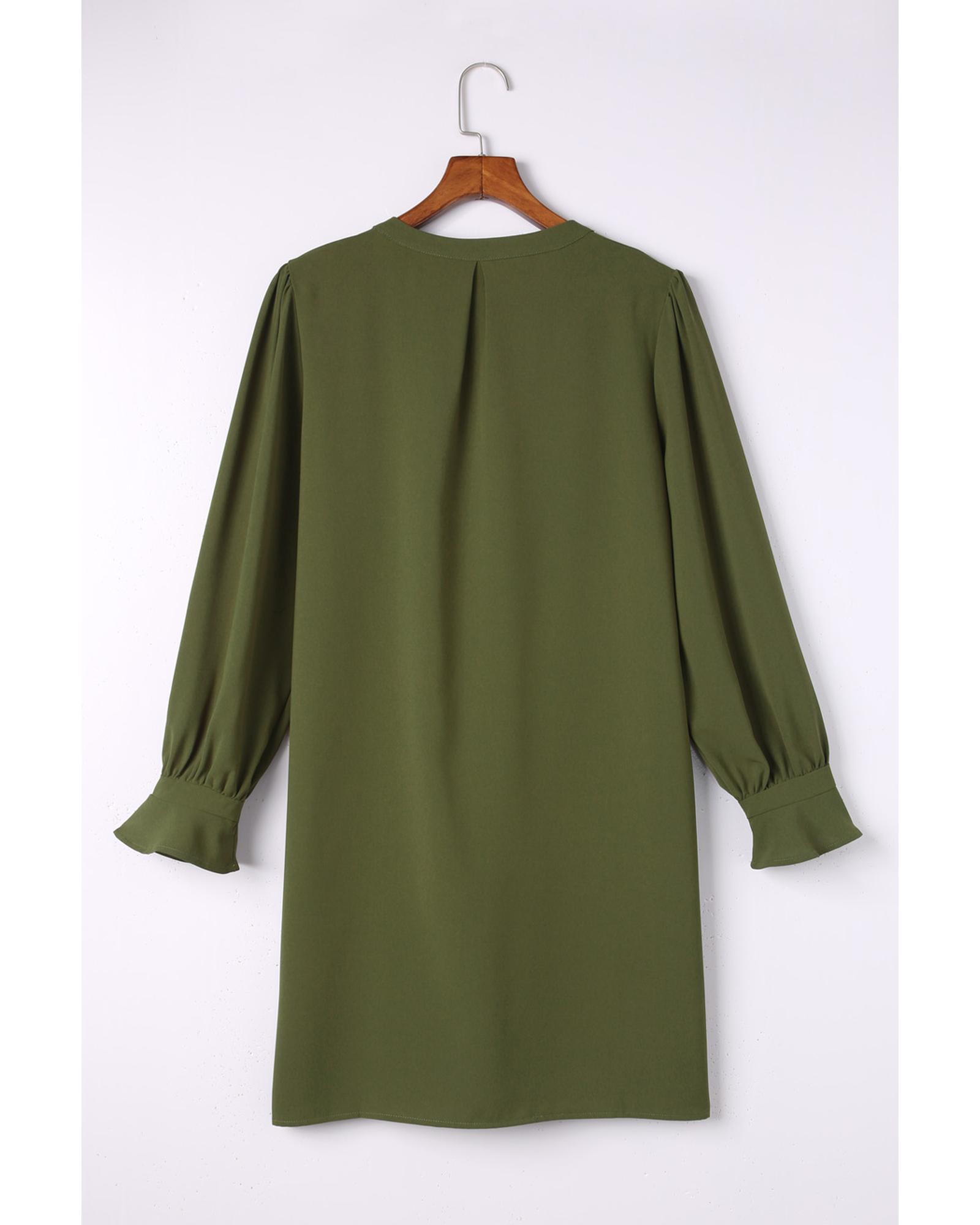 Azura Exchange Green Split V Neck Ruffled Sleeves Shirt Dress – S