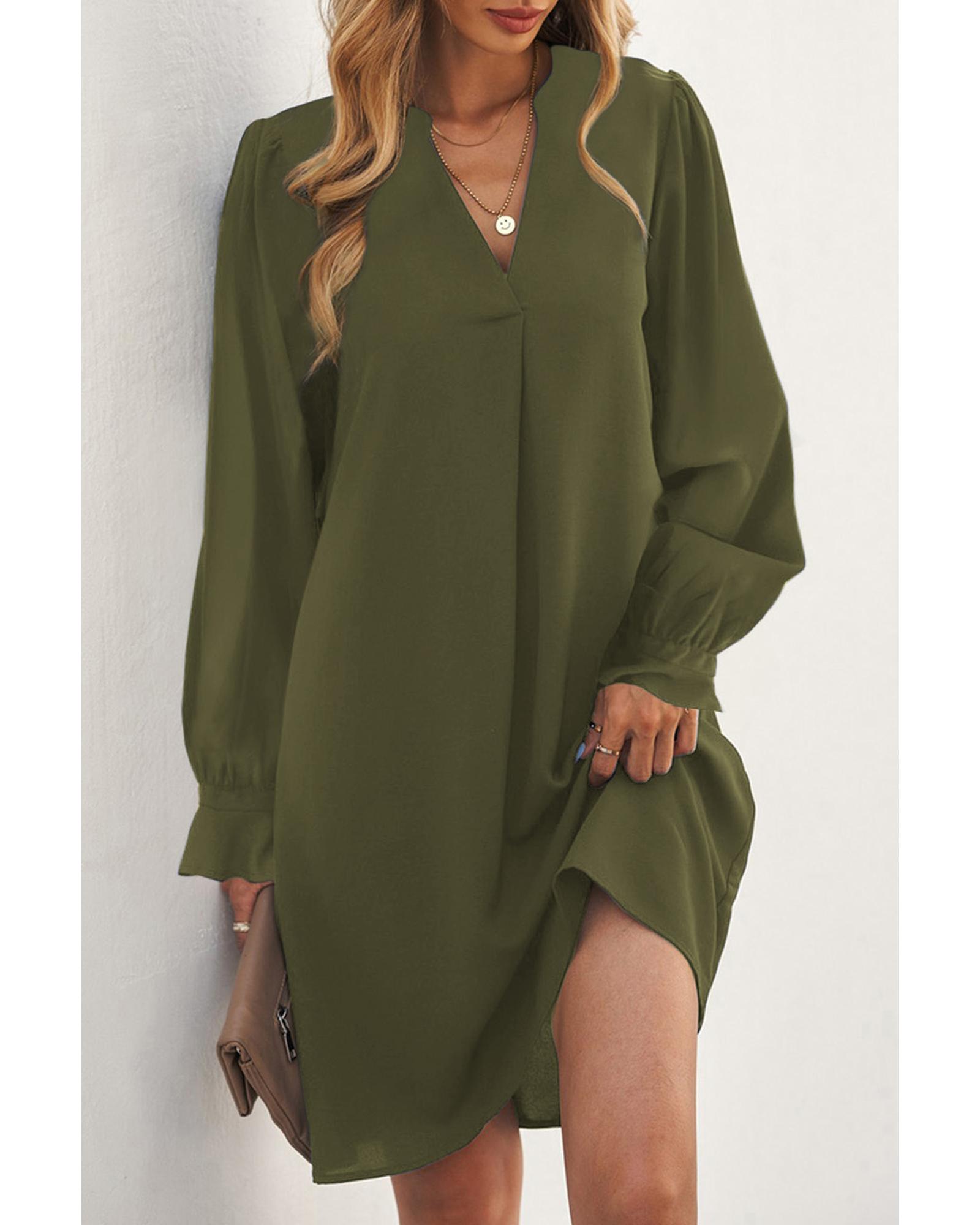 Azura Exchange Green Split V Neck Ruffled Sleeves Shirt Dress - S Original price was: $60.99.Current price is: $32.99.