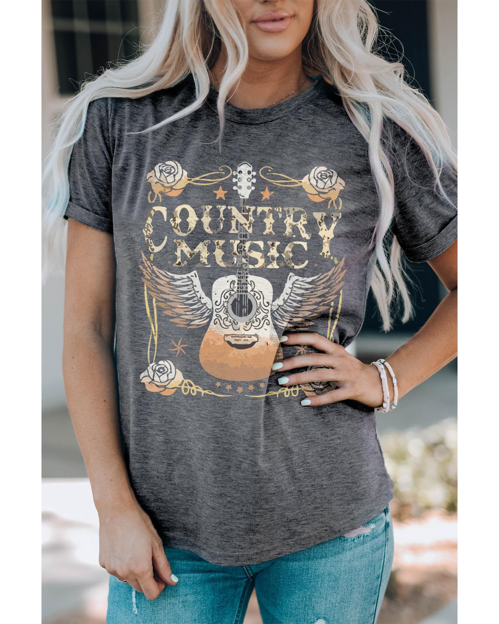 - COUNTRY MUSIC Guitar Graphic Print Short Sleeve T Shirt