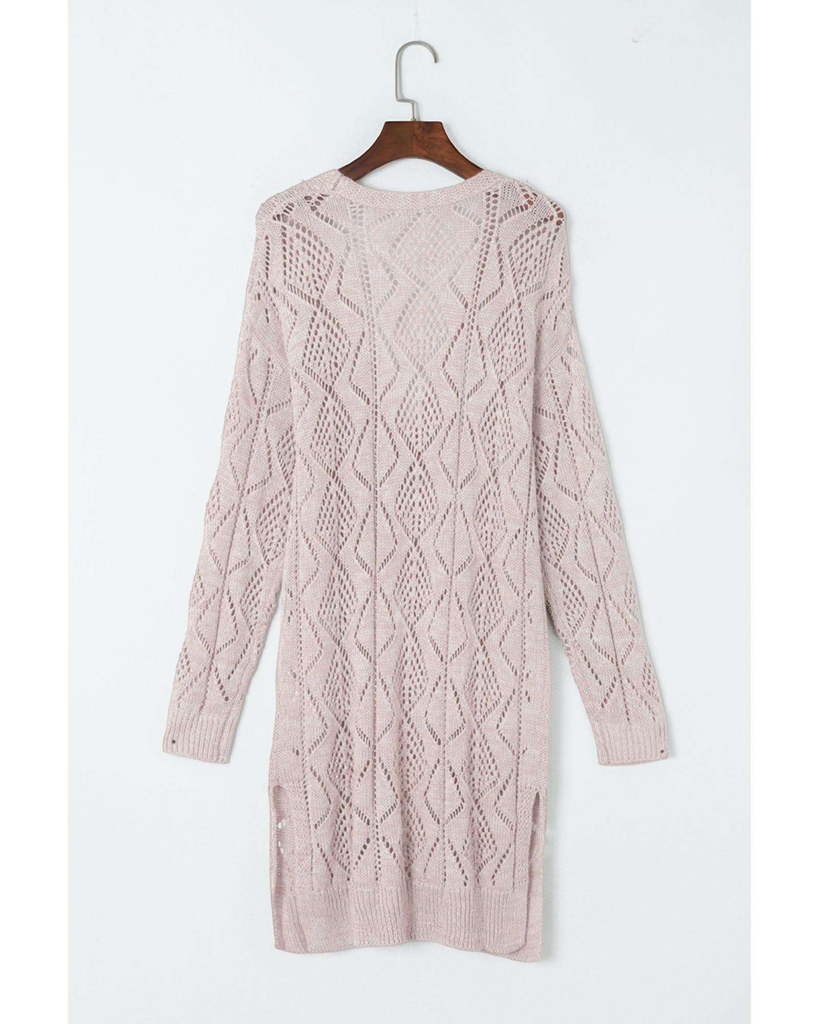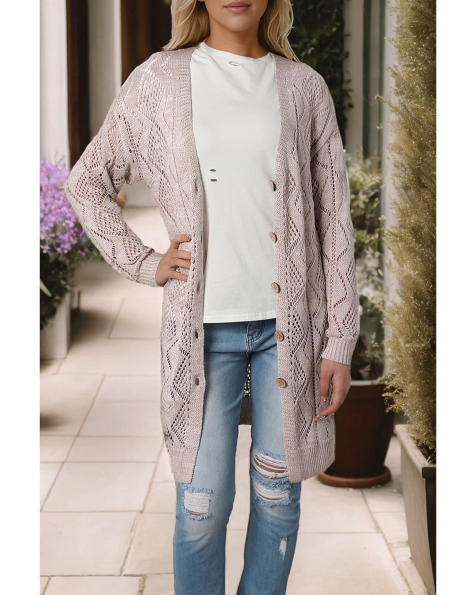 Azura Exchange Khaki Hollow-out Openwork Knit Cardigan – XL