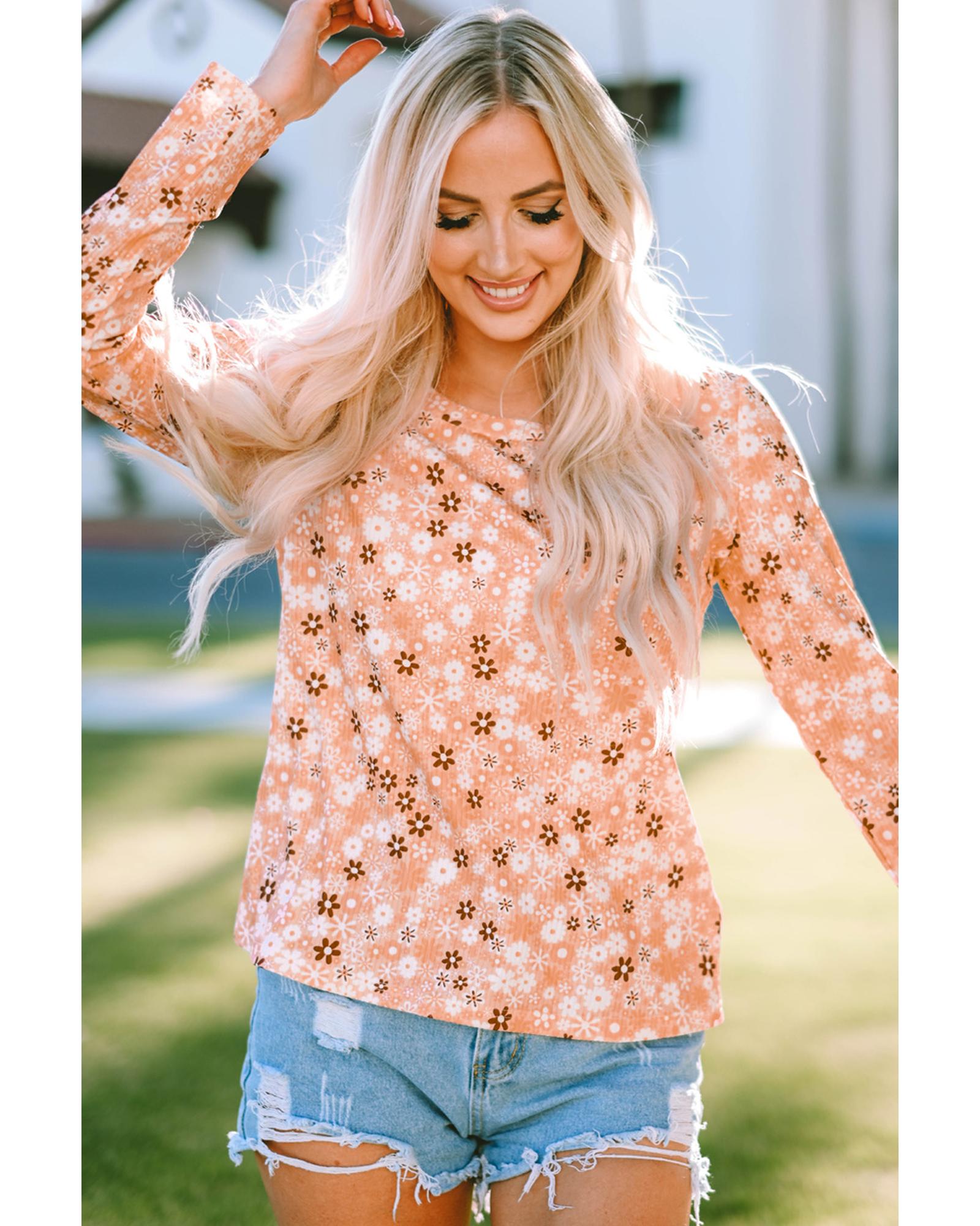 - Stylish and feminine Floral Knit Long Sleeve Top