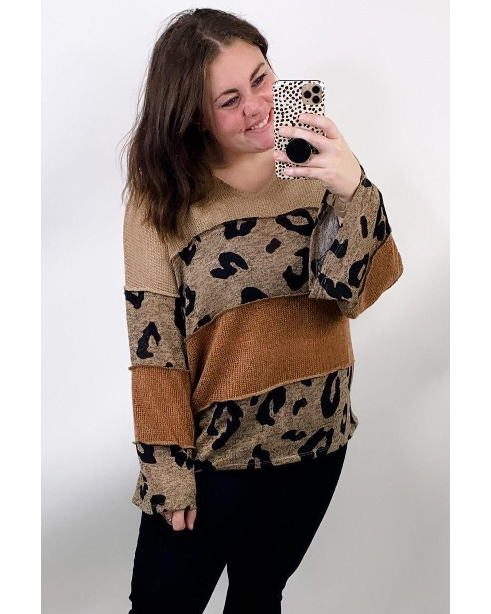 Azura Exchange Leopard Colorblock Patchwork Knit Top - S