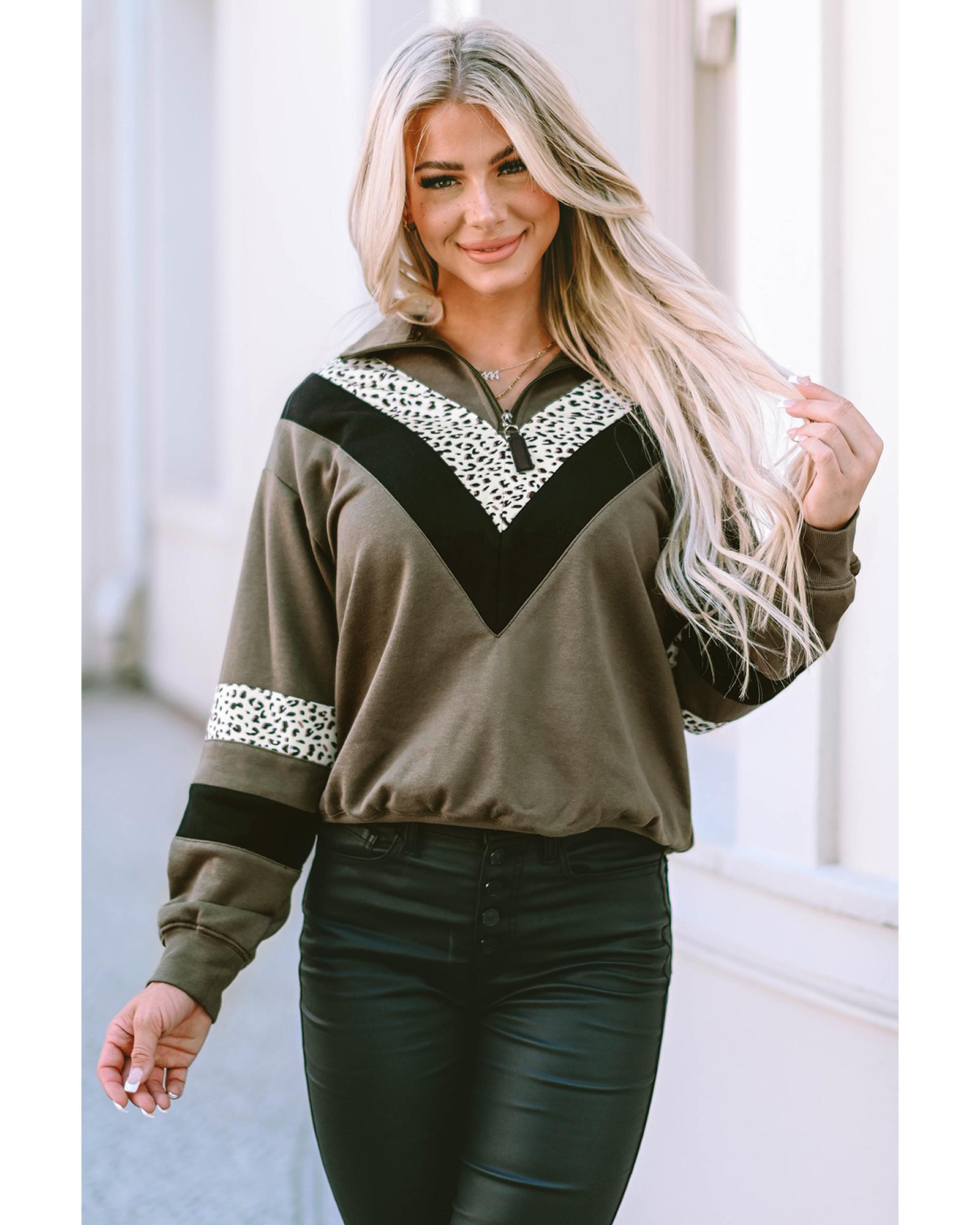 Azura Exchange Leopard Contrast Splicing Quarter Zip Sweatshirt - XL Original price was: $72.99.Current price is: $38.99.