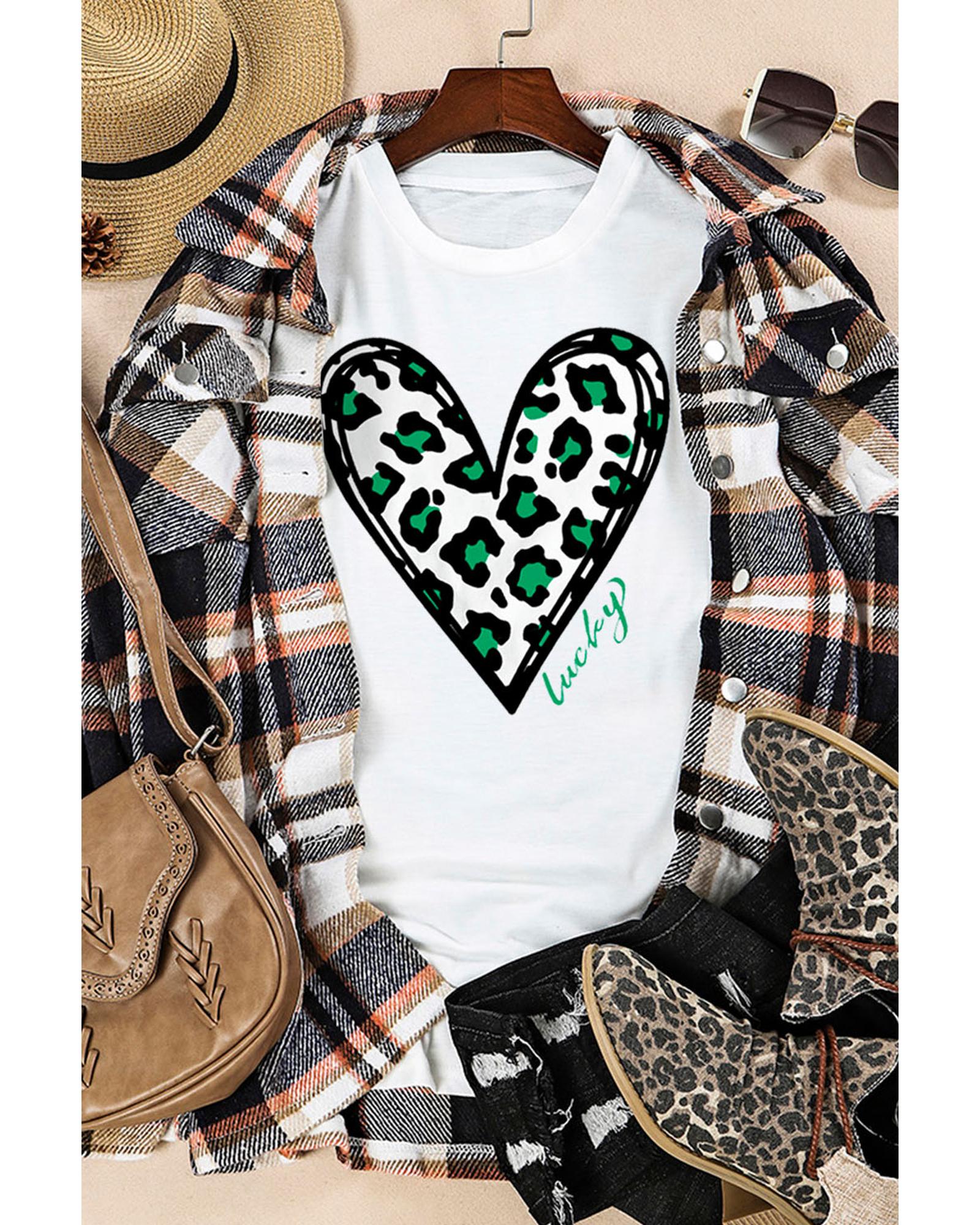 - Stylish and trendy Lucky Leopard Heart Print St Patricks Day T-Shirt