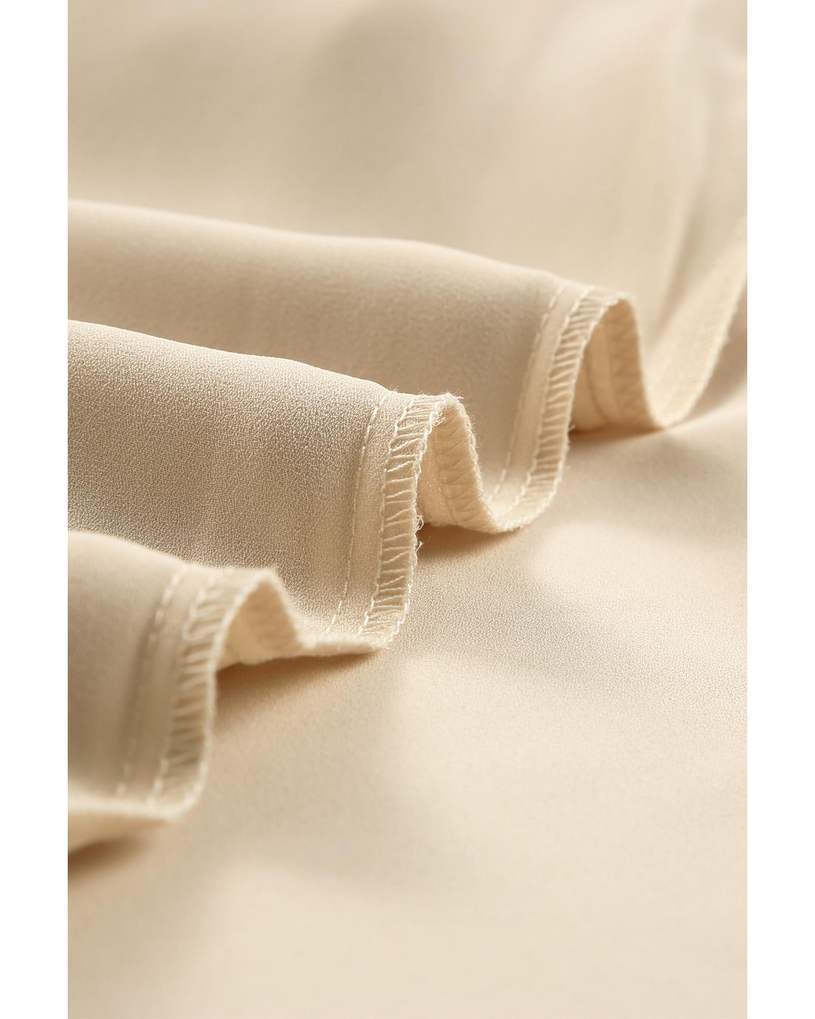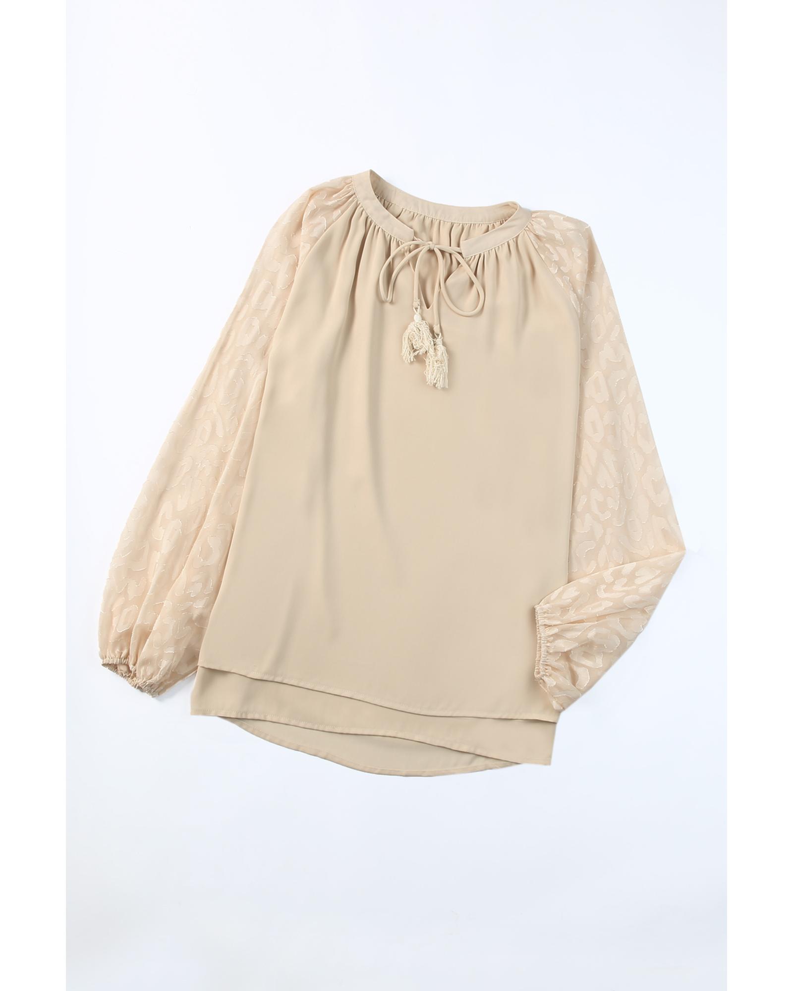 - Beige Leopard Mesh Bubble Sleeve Split Neck Blouse