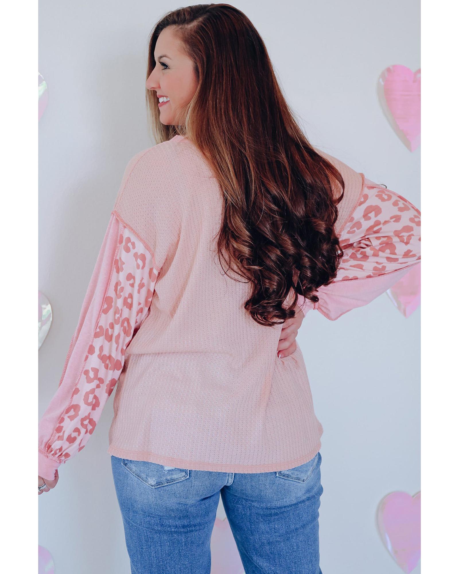 Azura Exchange Leopard Patchwork Waffle Knit Top – L