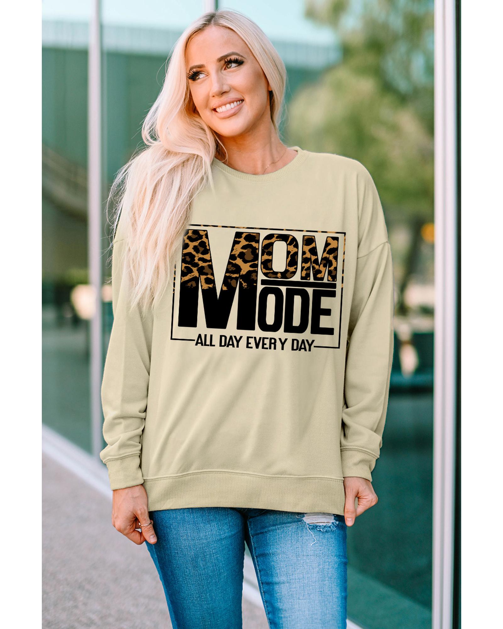 • Stylish and comfortable Khaki MOM MODE Leopard Print Long Sleeve Sweatshirt