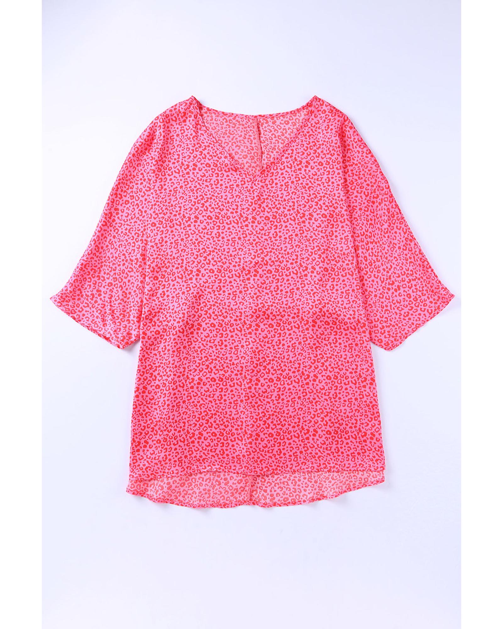 Azura Exchange Leopard Print Oversized V Neck Top – S
