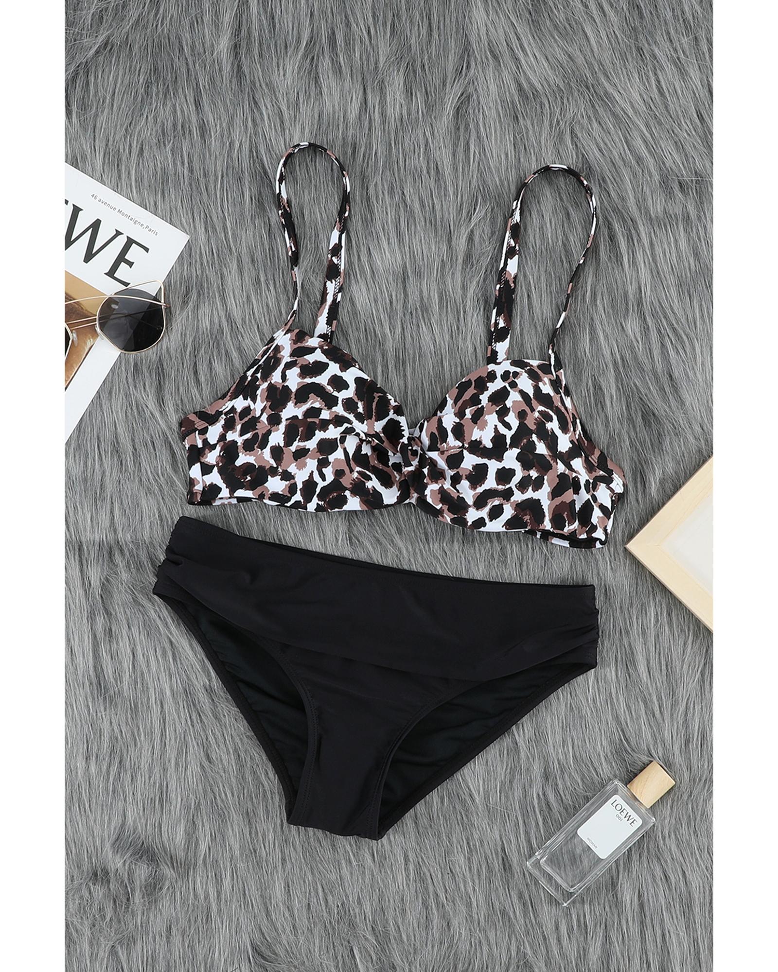 Azura Exchange Leopard Twisted Bust Bikini Set – L