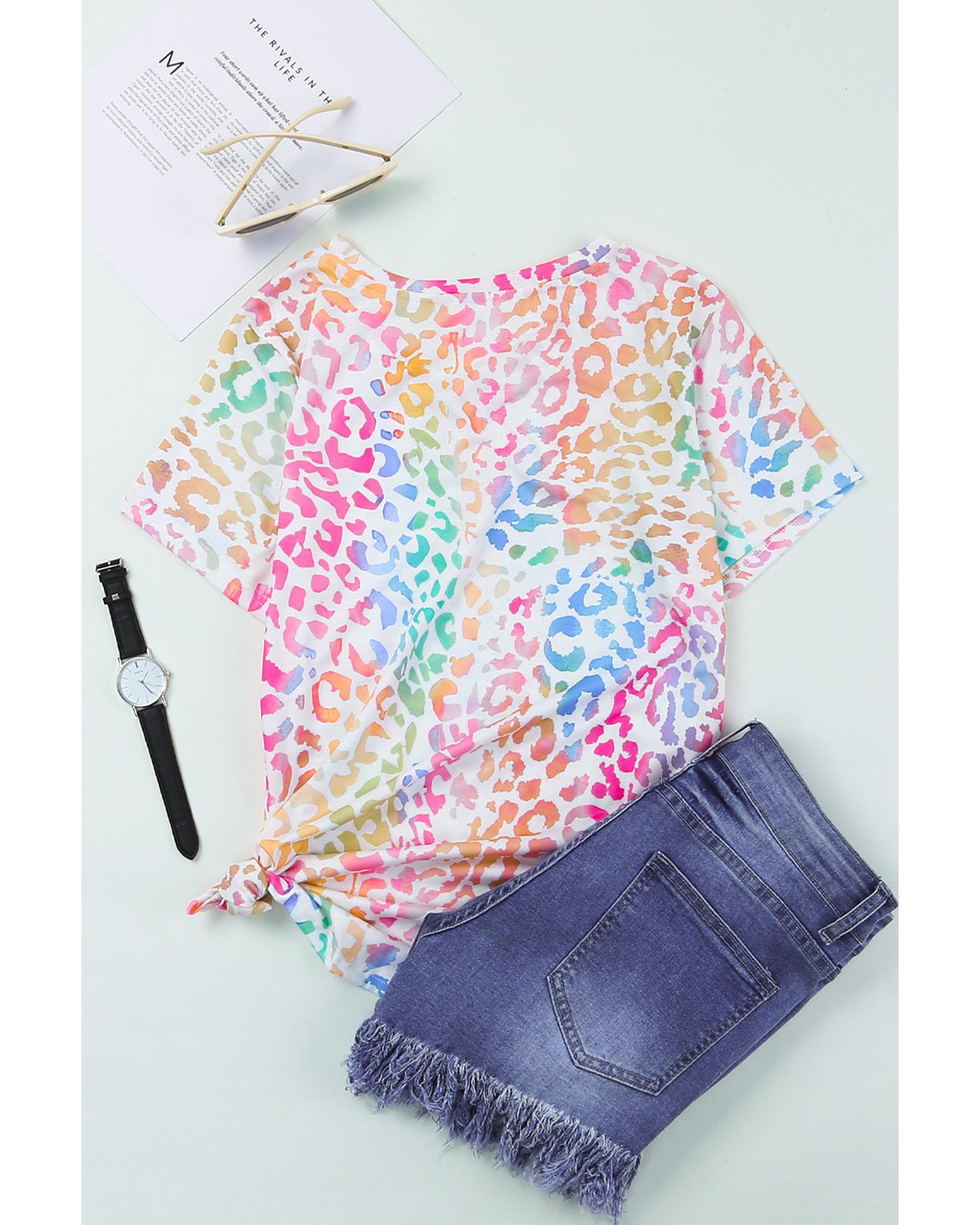 • Colorful Leopard V Neck Short Sleeve Top