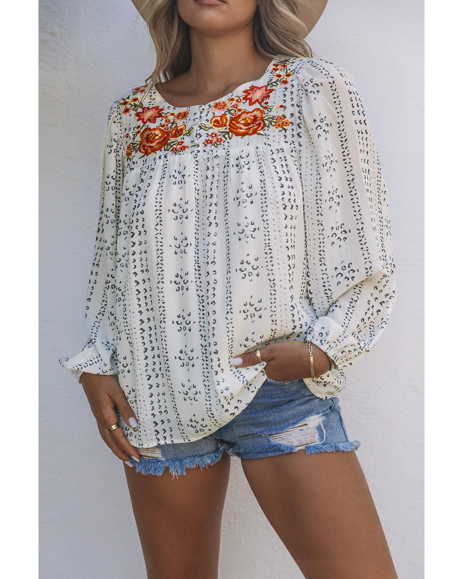Azura Exchange Long Sleeve Embroidered Print Blouse – M