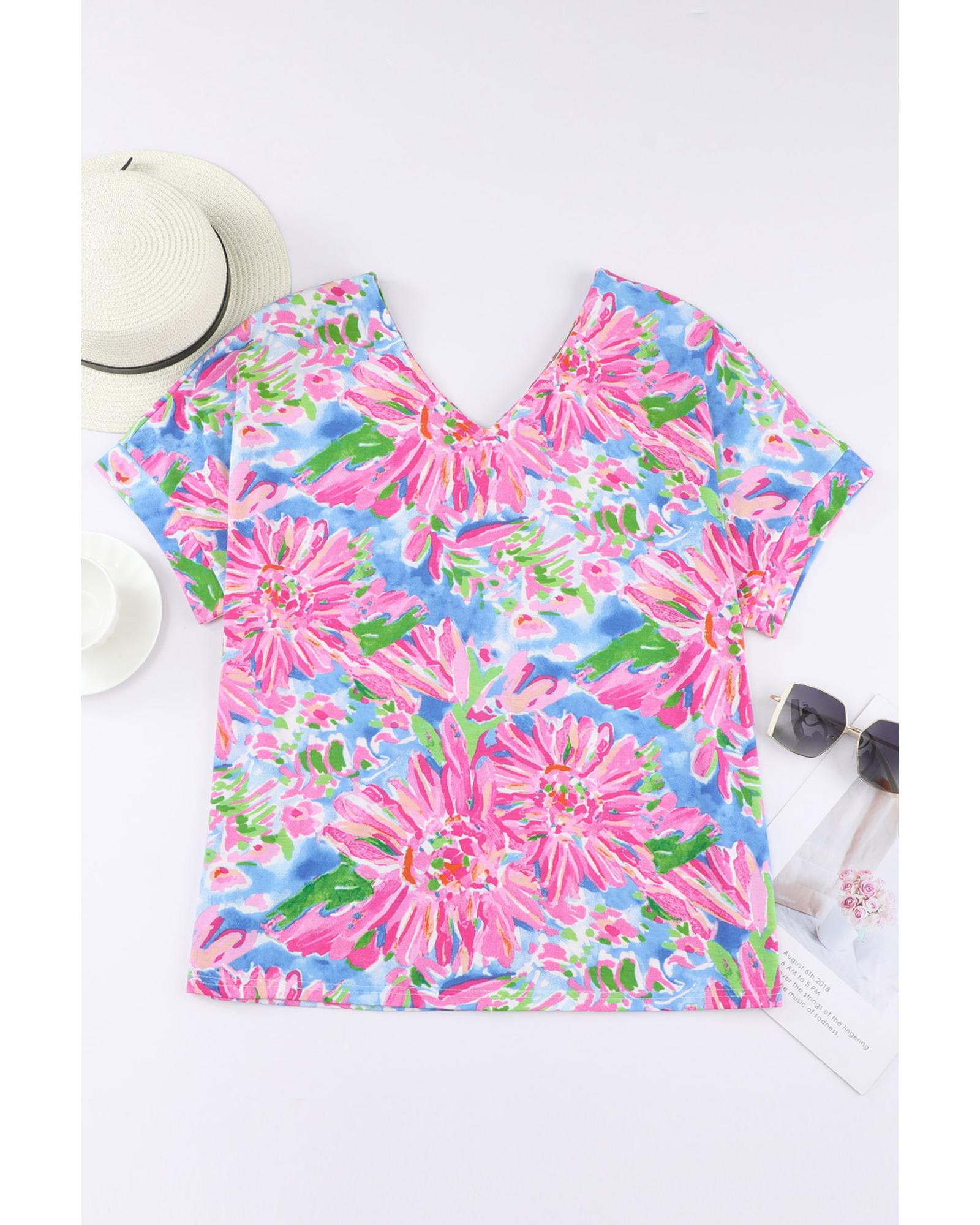 Azura Exchange Loose Fit Floral Print V Neck T Shirt – M