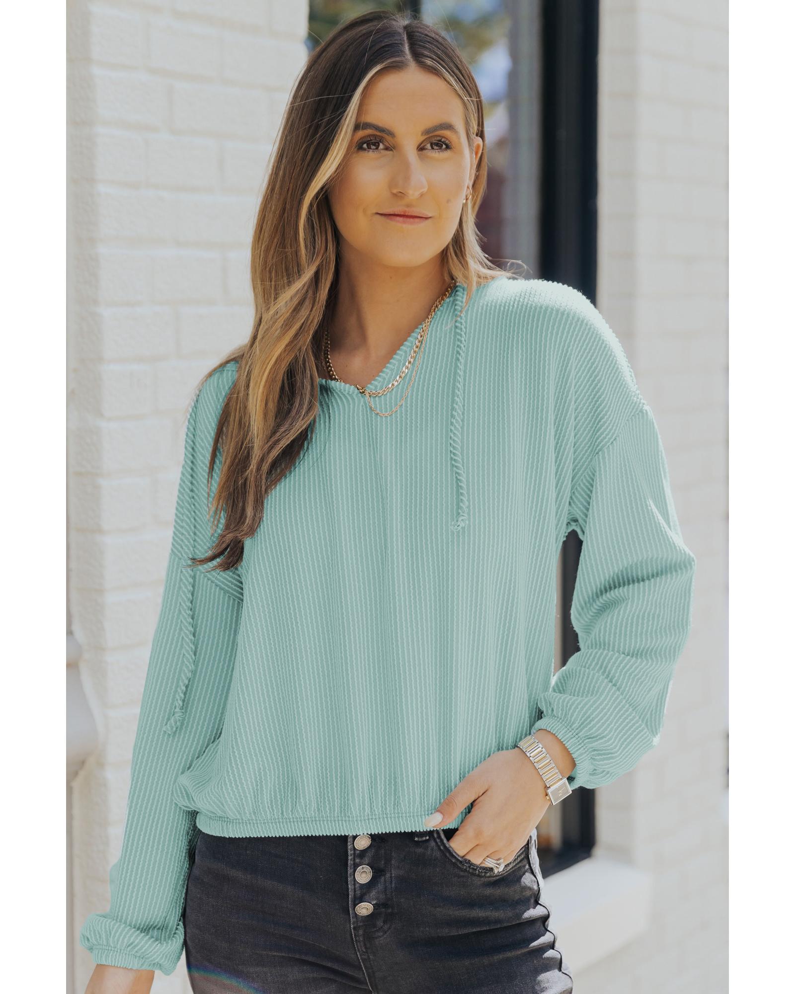 - Loose Fit Ribbed V Neck Hoodie