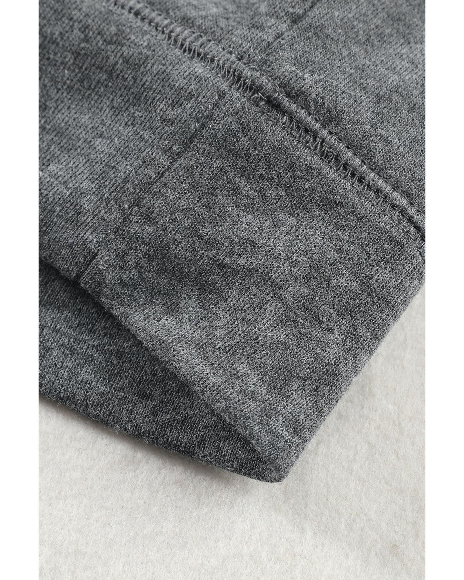 - Gray Mineral Wash Kangaroo Pocket Drawstring Pullover Hoodie