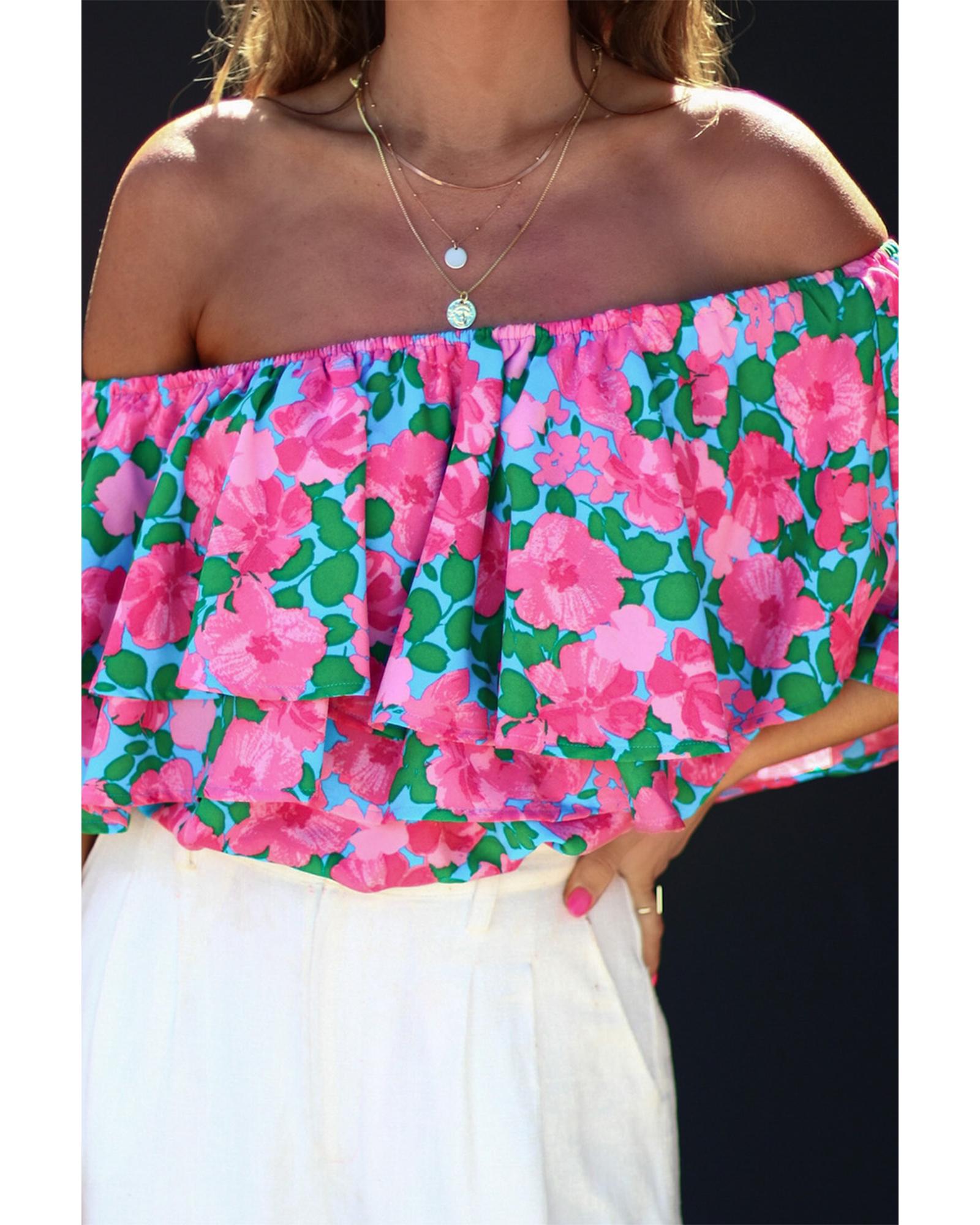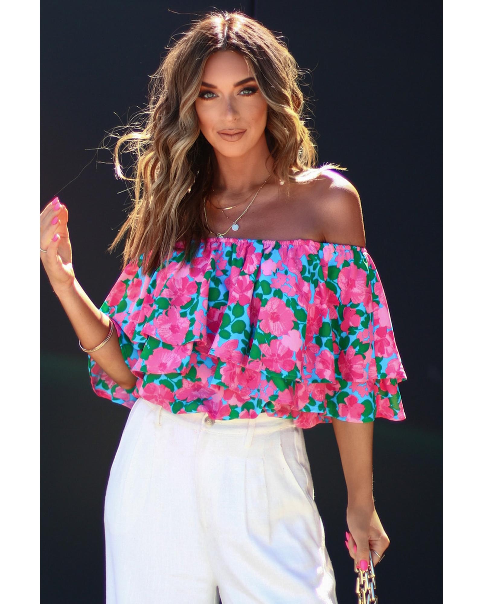 Azura Exchange Off-Shoulder Tiered Ruffle Blouse - M