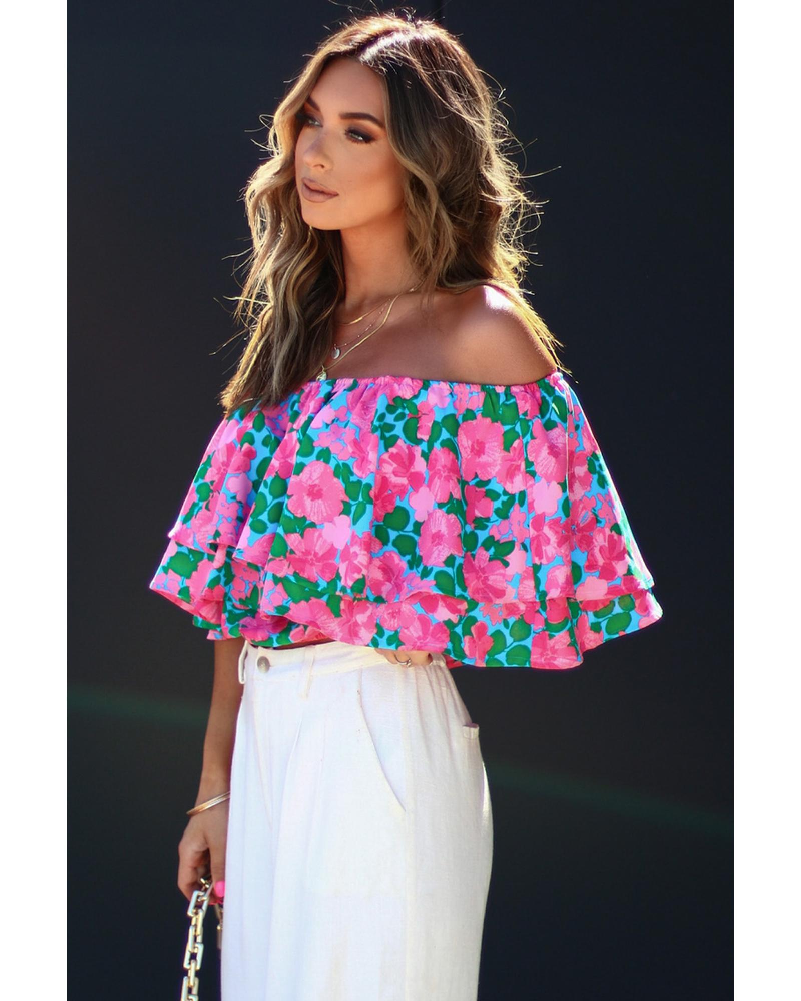 Azura Exchange Off-Shoulder Tiered Ruffle Blouse – S