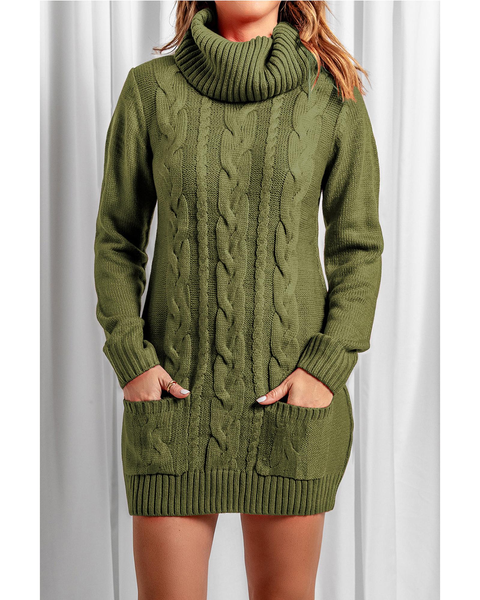 Azura Exchange Olive Cowl Neck Cable Knit Sweater Dress – XL
