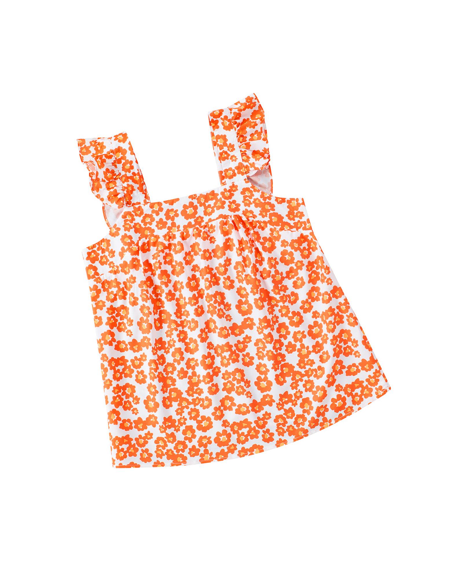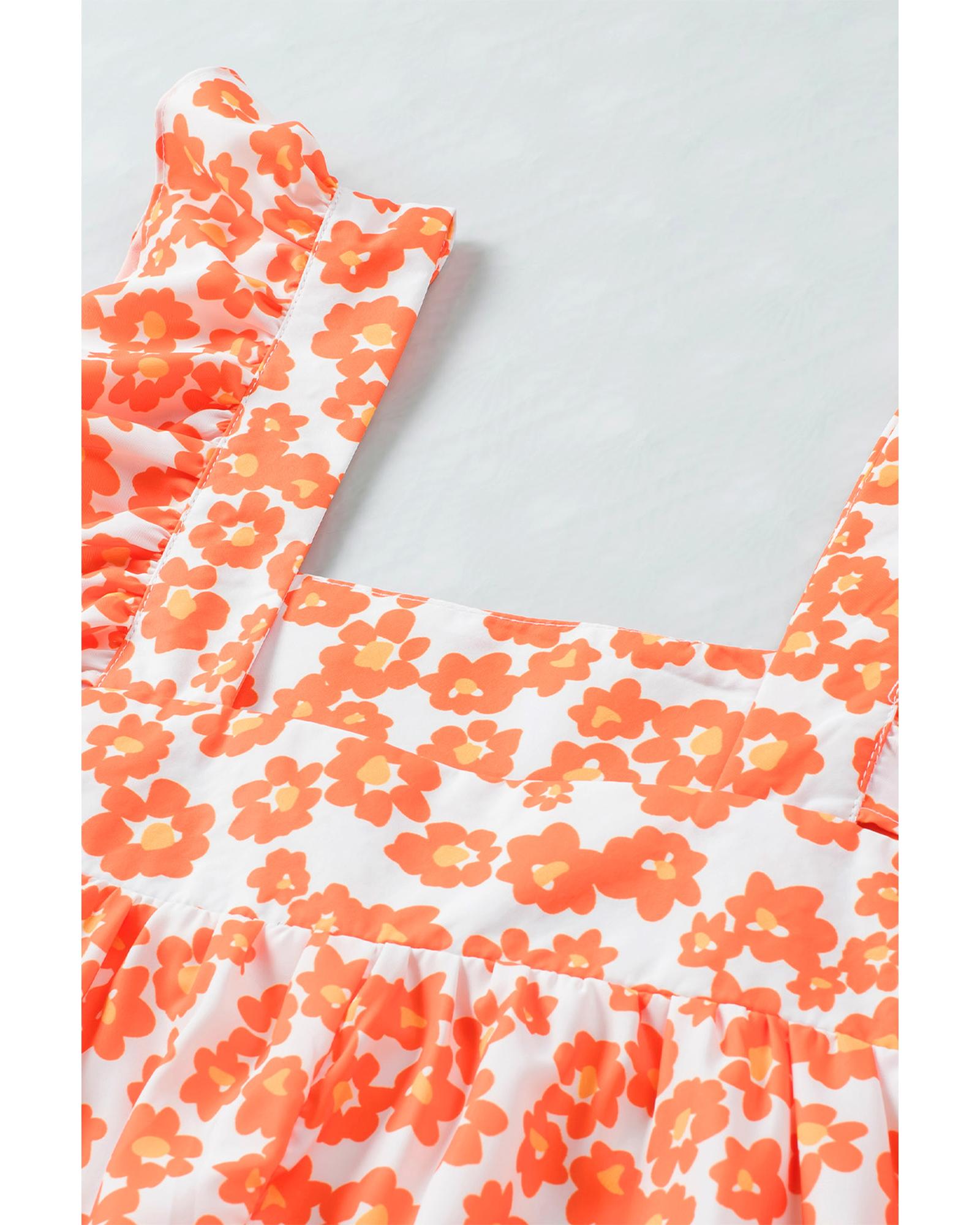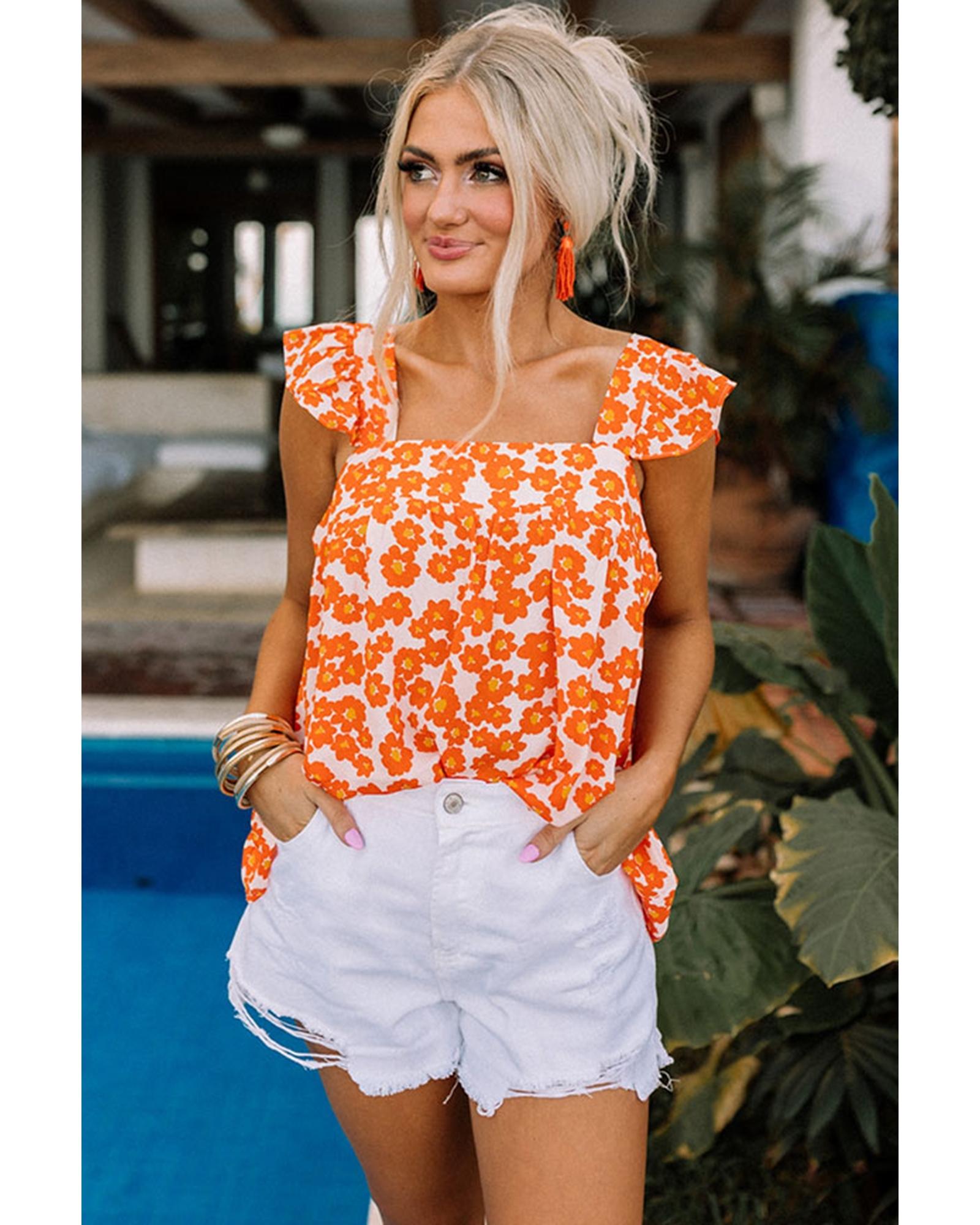 Azura Exchange Orange Floral Print Square Neck Ruffle Tank Top – M