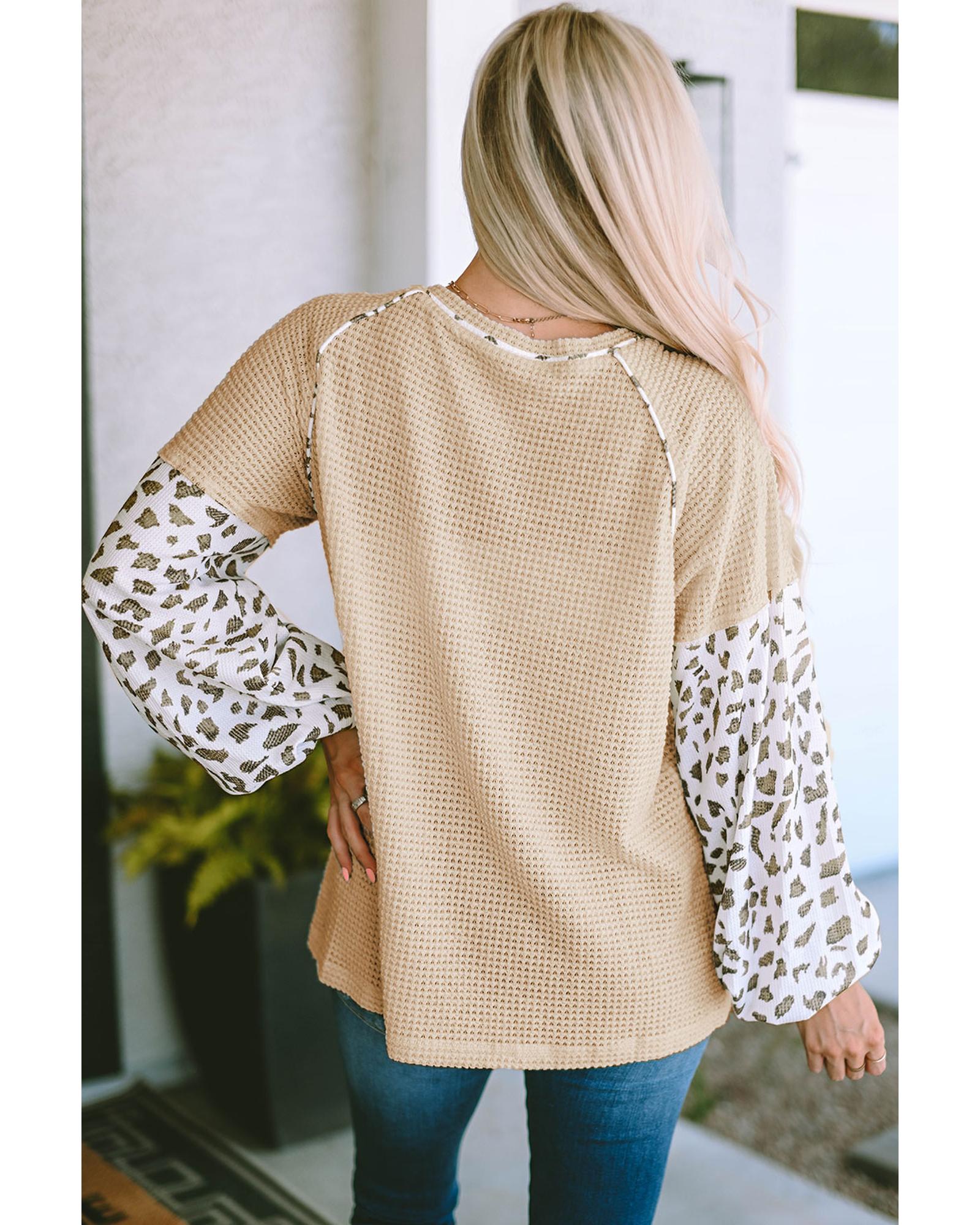 Azura Exchange Patchwork Leopard Print Lantern Sleeve Top – L