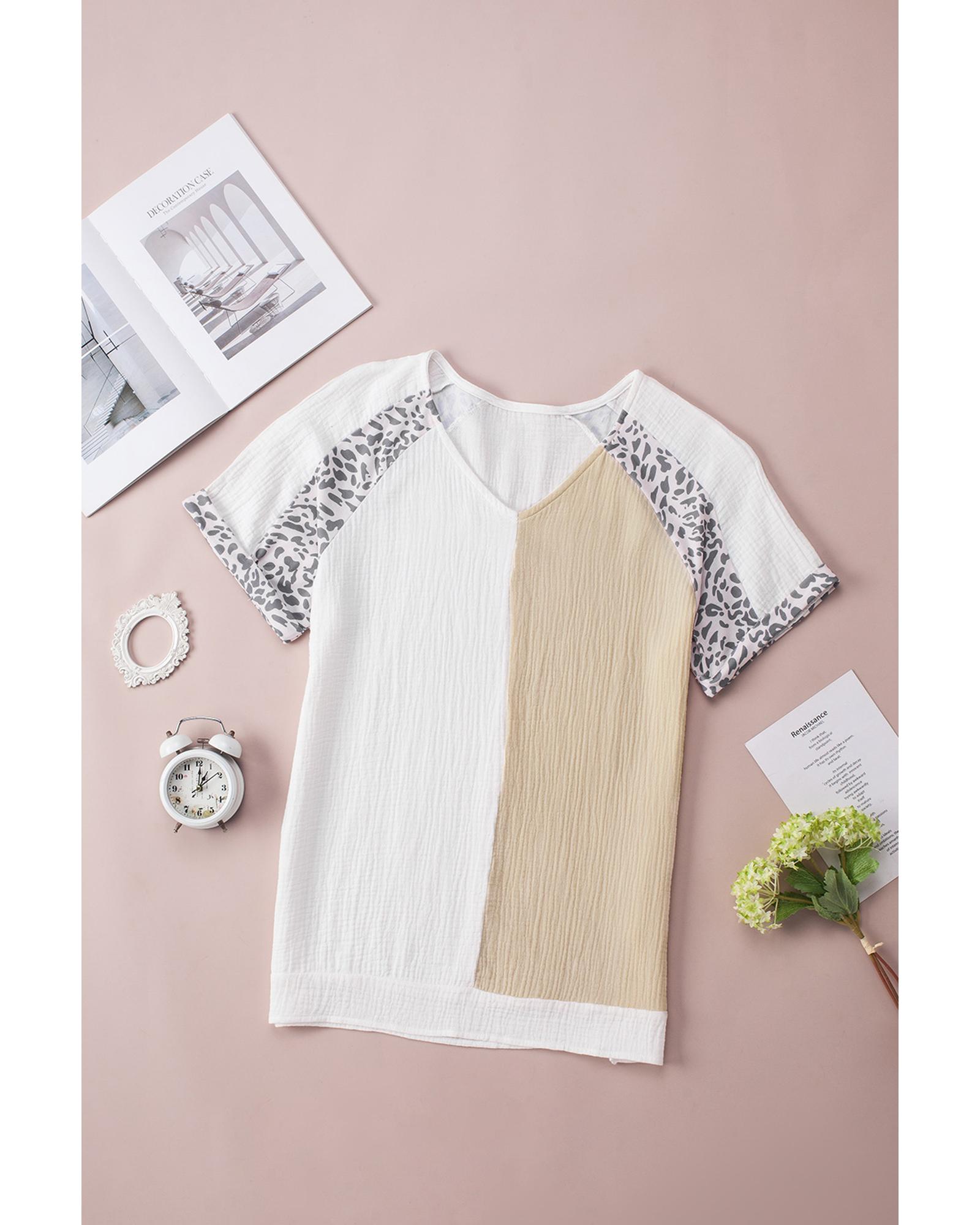 Azura Exchange Patchwork Leopard Trim Blouse – M