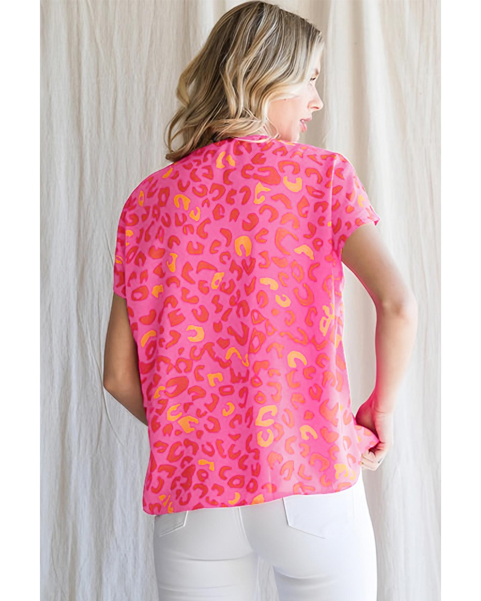 - Fashionable and eye-catching Pink Leopard V Neck Short Sleeve Blouse