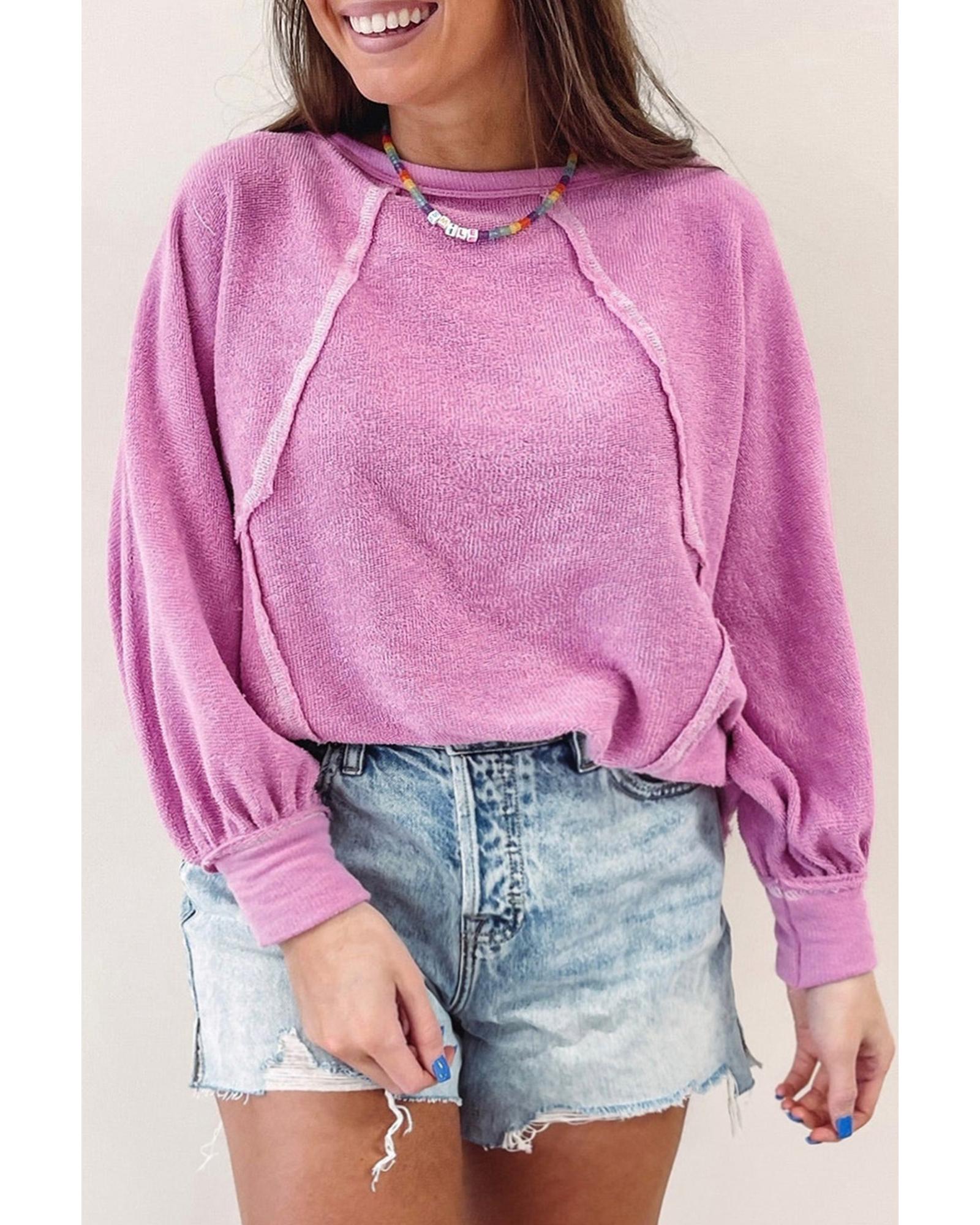 Azura Exchange Pink Plus Size Exposed Seam Terry Long Sleeve Top – 1X