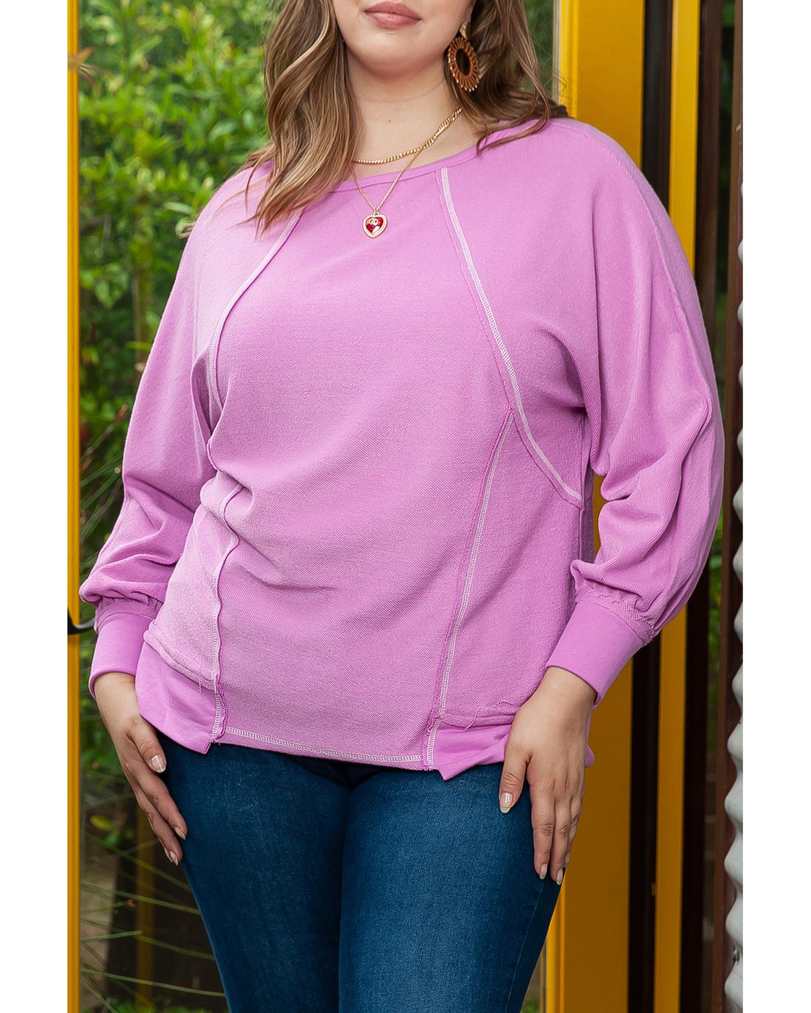 Azura Exchange Pink Plus Size Exposed Seam Terry Long Sleeve Top – 2X