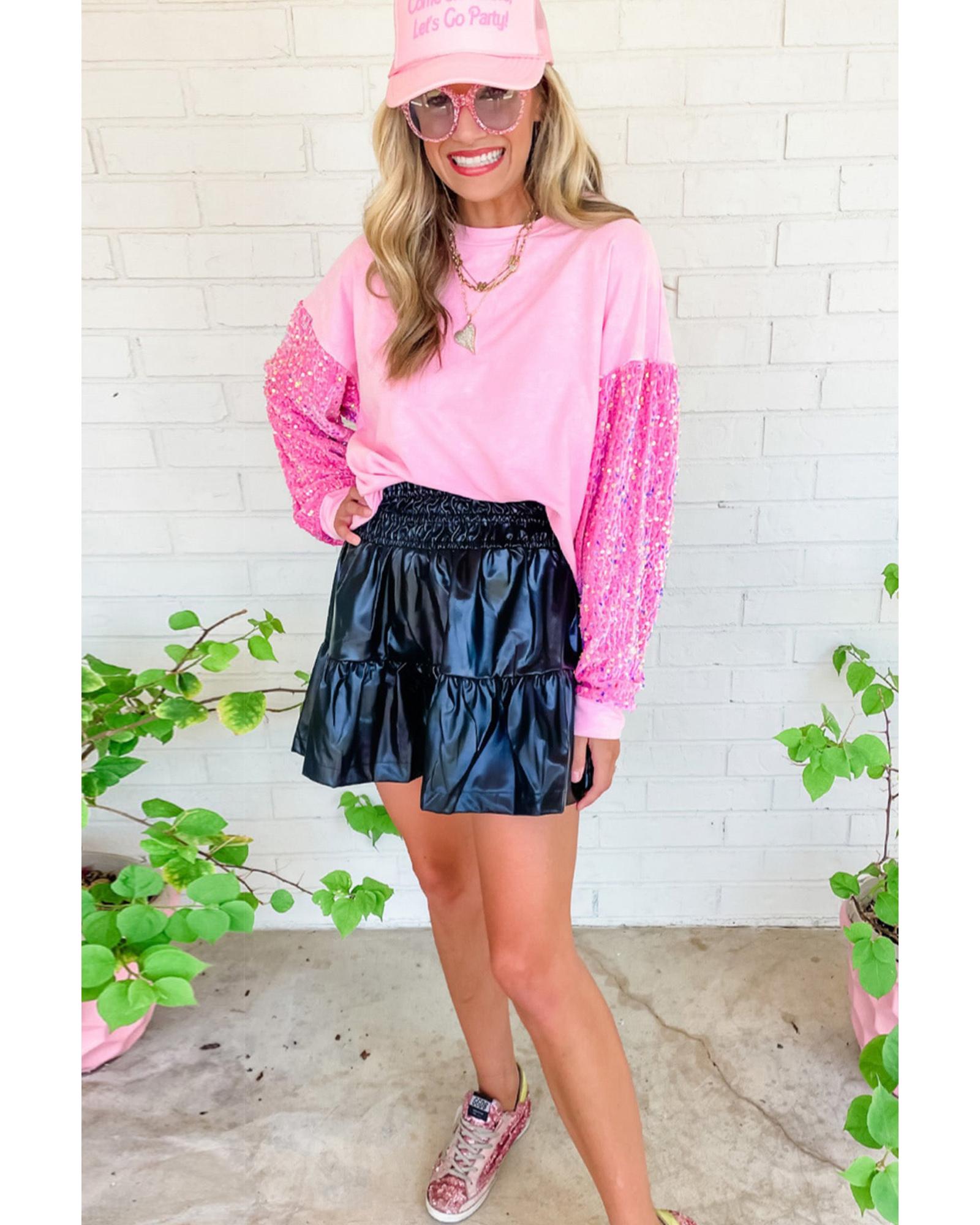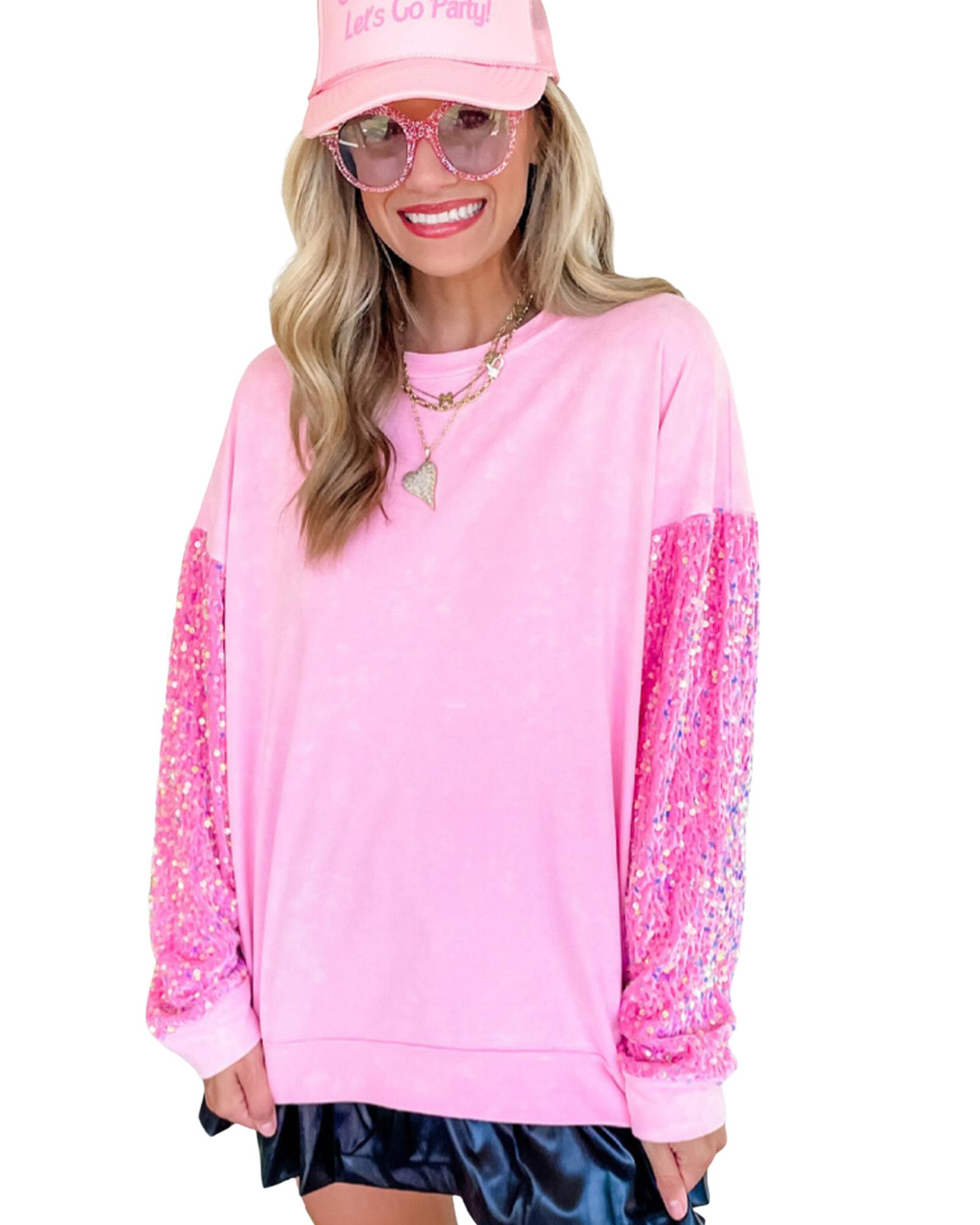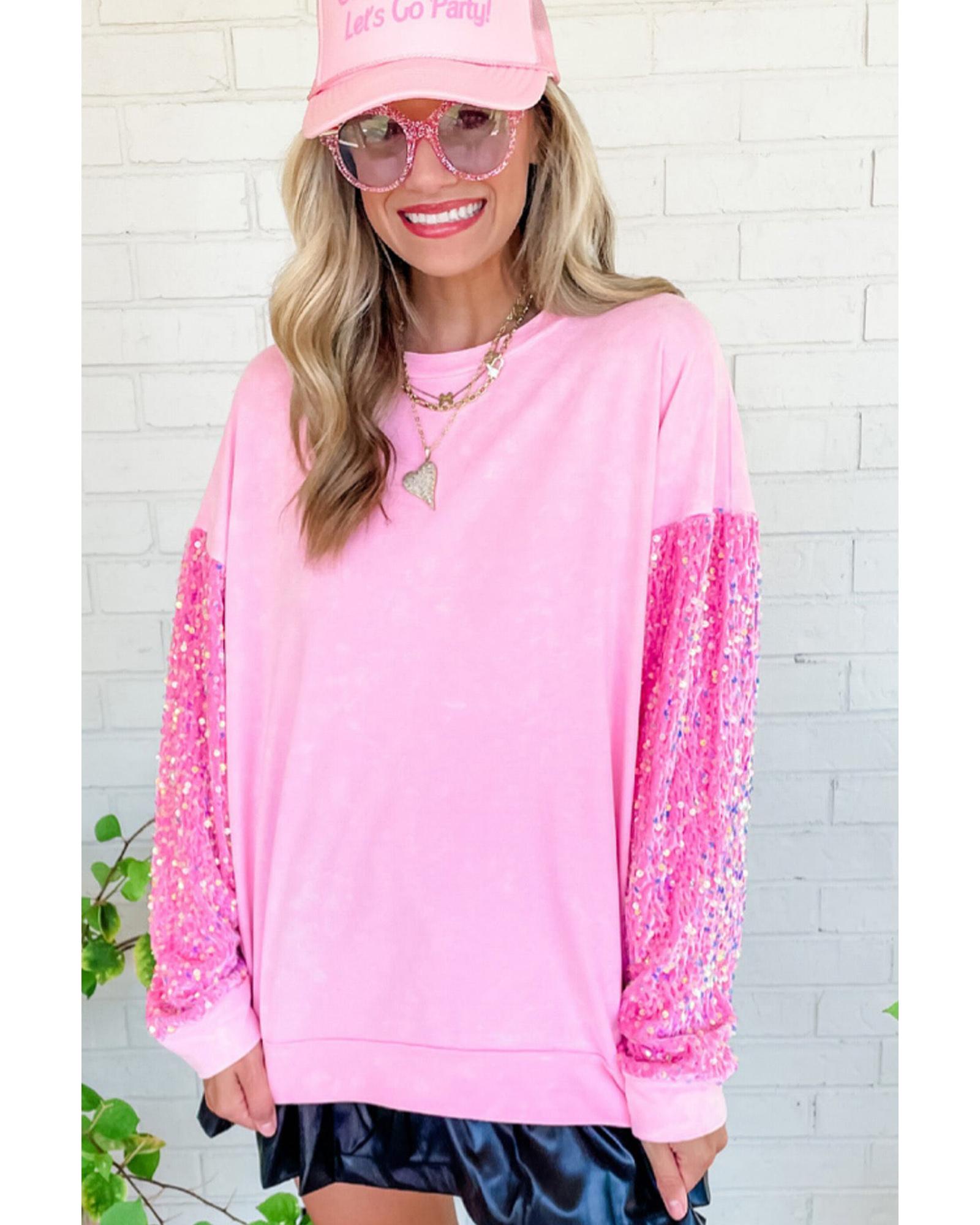 Azura Exchange Pink Sequin Patchwork Long Sleeve Pullover Top – XL