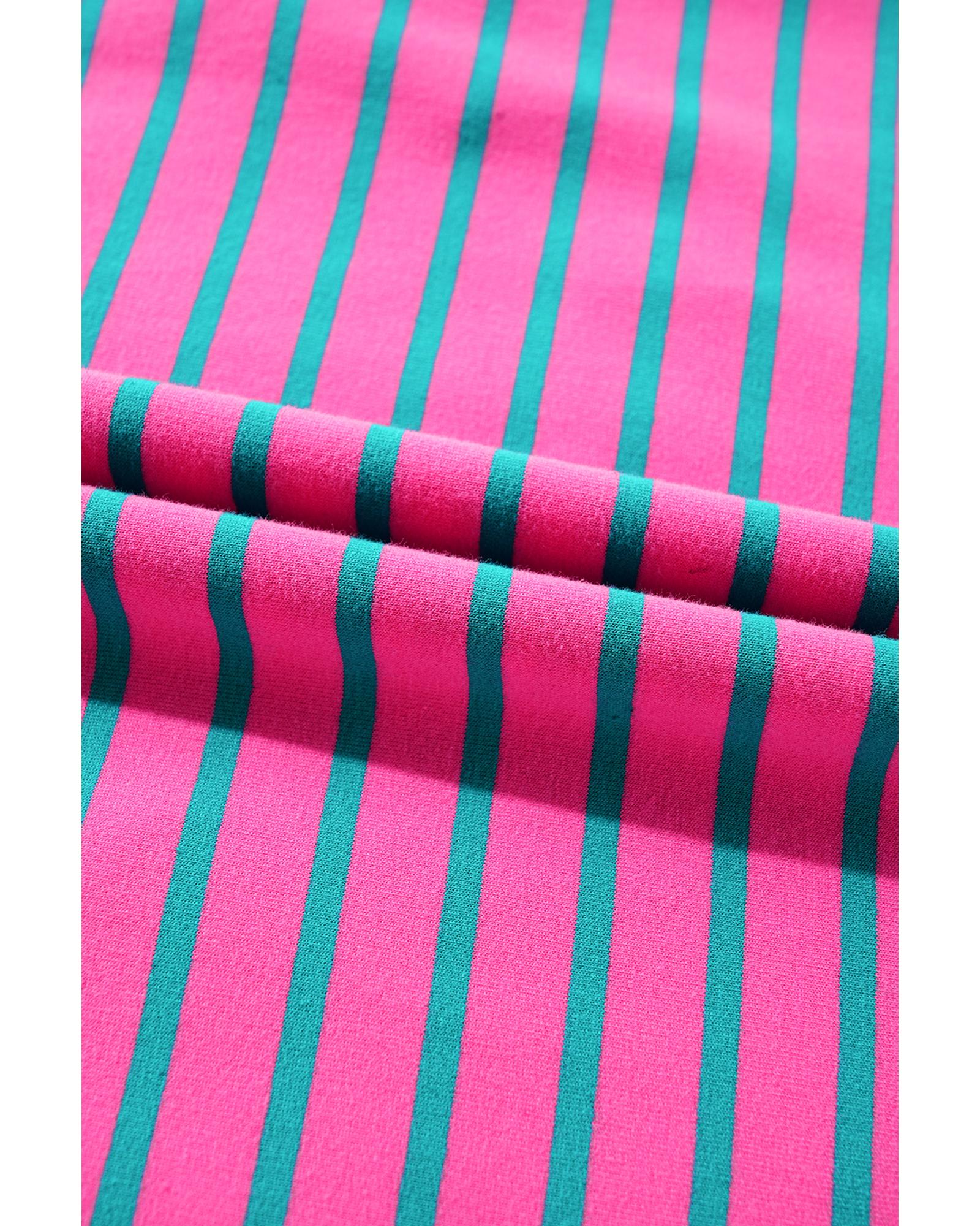 Azura Exchange Pink Stripe Collared V Neck Puff Sleeve T Shirt Dress – L