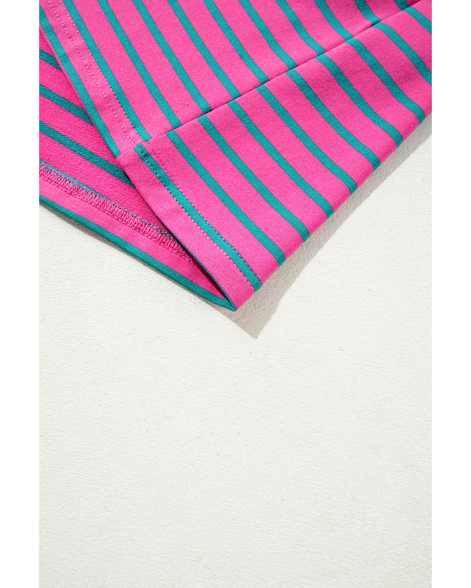 Azura Exchange Pink Stripe Collared V Neck Puff Sleeve T Shirt Dress – M