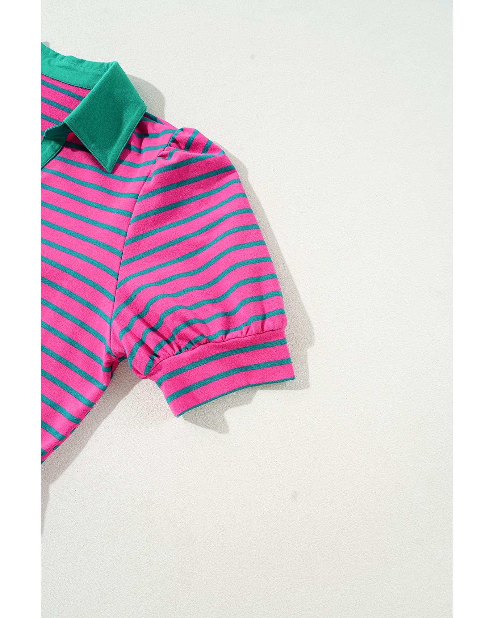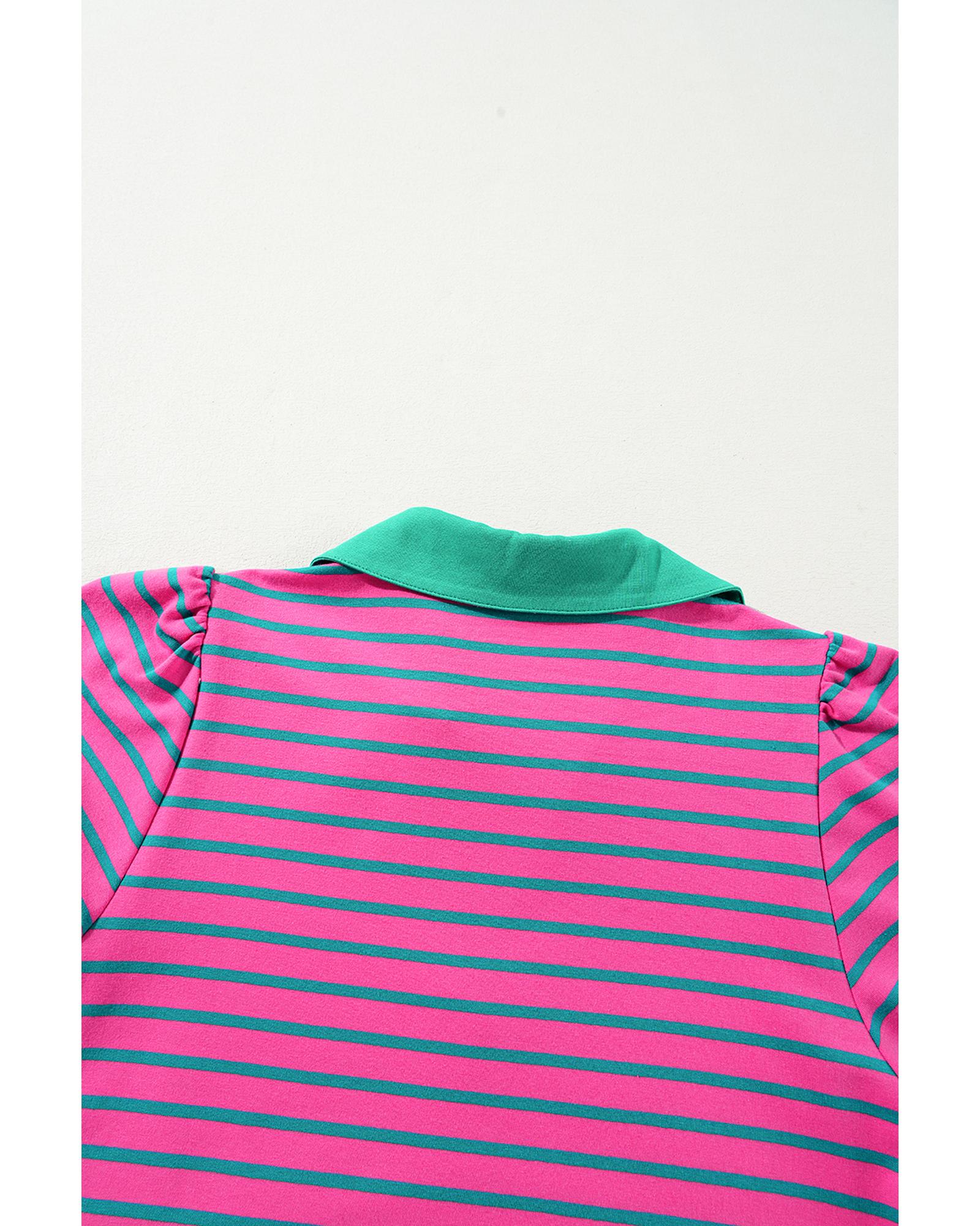 Azura Exchange Pink Stripe Collared V Neck Puff Sleeve T Shirt Dress - S