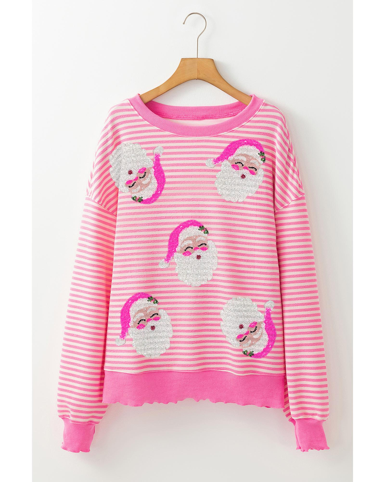 Azura Exchange Pink Stripe Santa Clause Print Drop Shoulder Long Sleeve Loose Top – XL