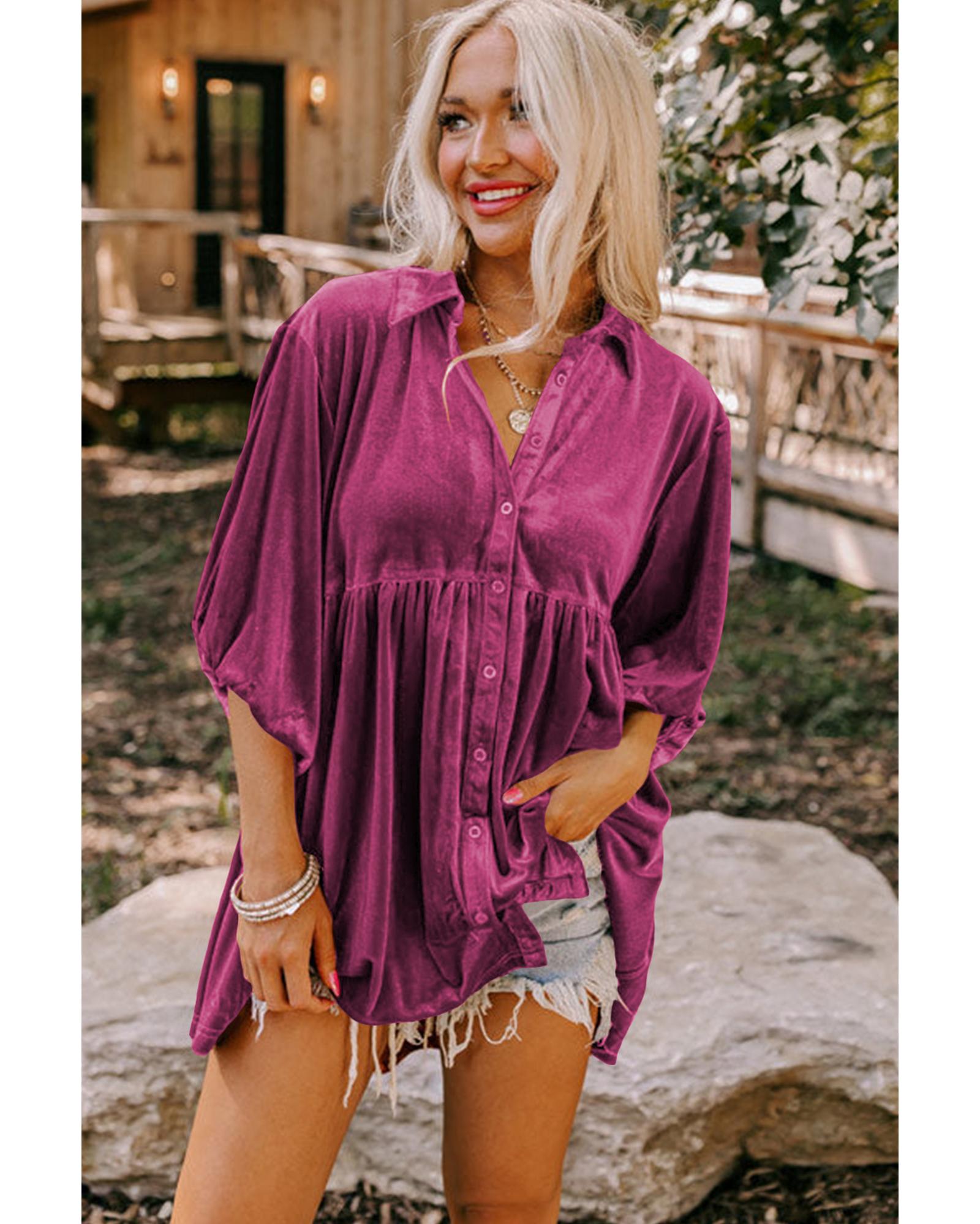 Azura Exchange Pitaya Pink 3/4 Sleeve Tunic Babydoll Velvet Shirt – M