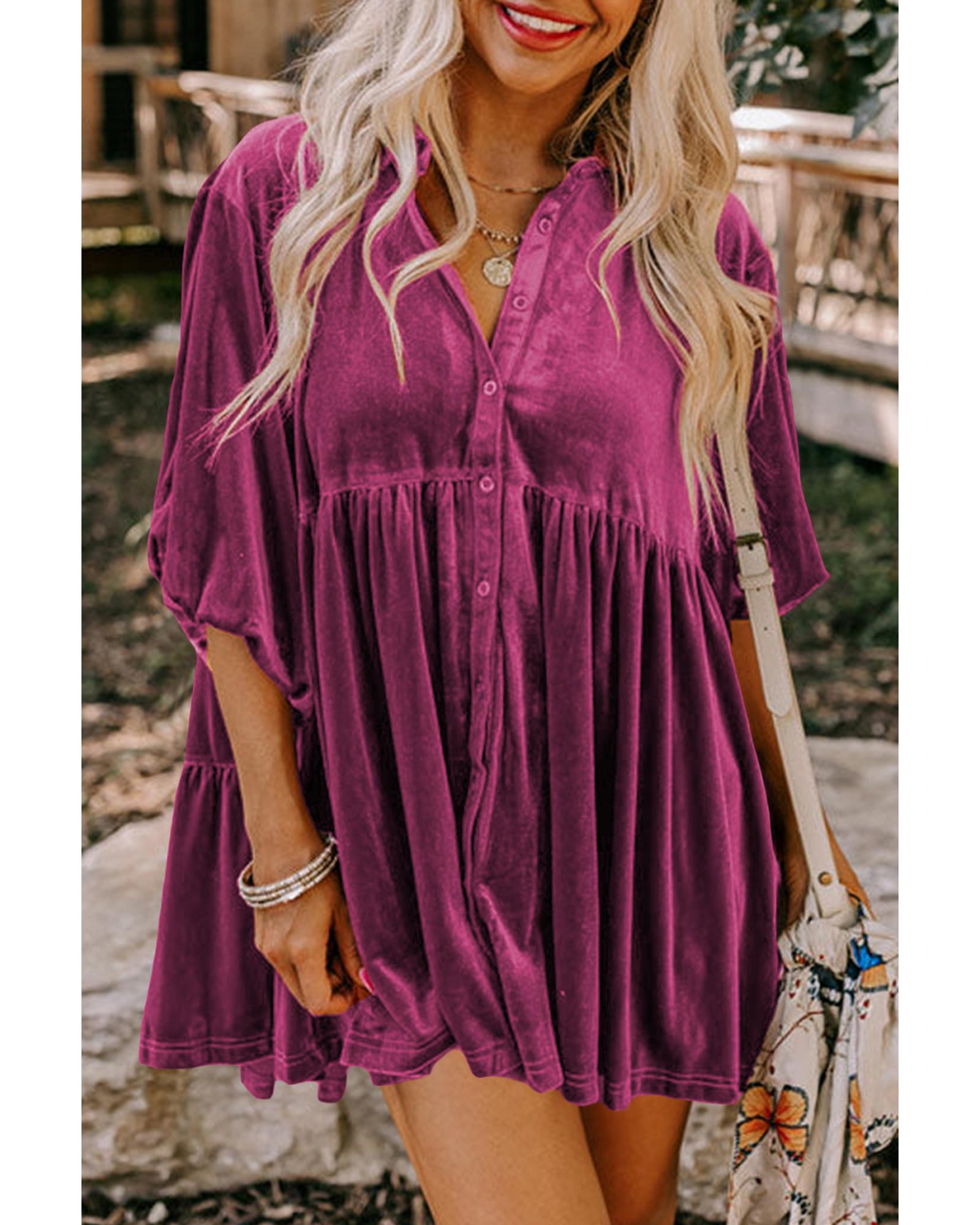 Azura Exchange Pitaya Pink 3/4 Sleeve Tunic Babydoll Velvet Shirt – S