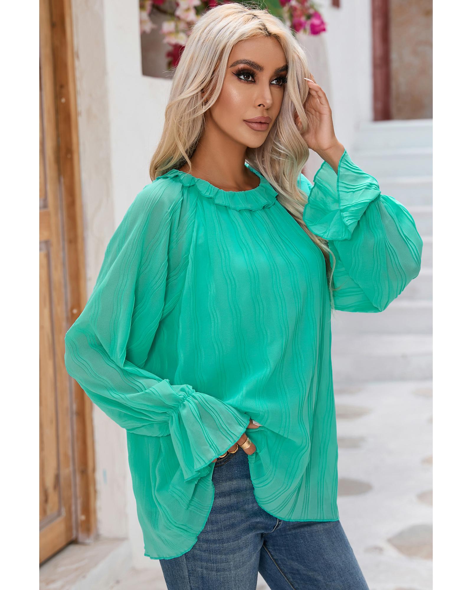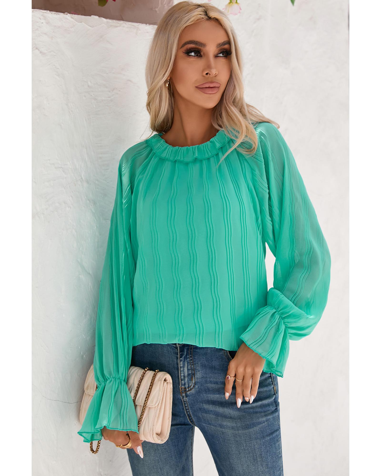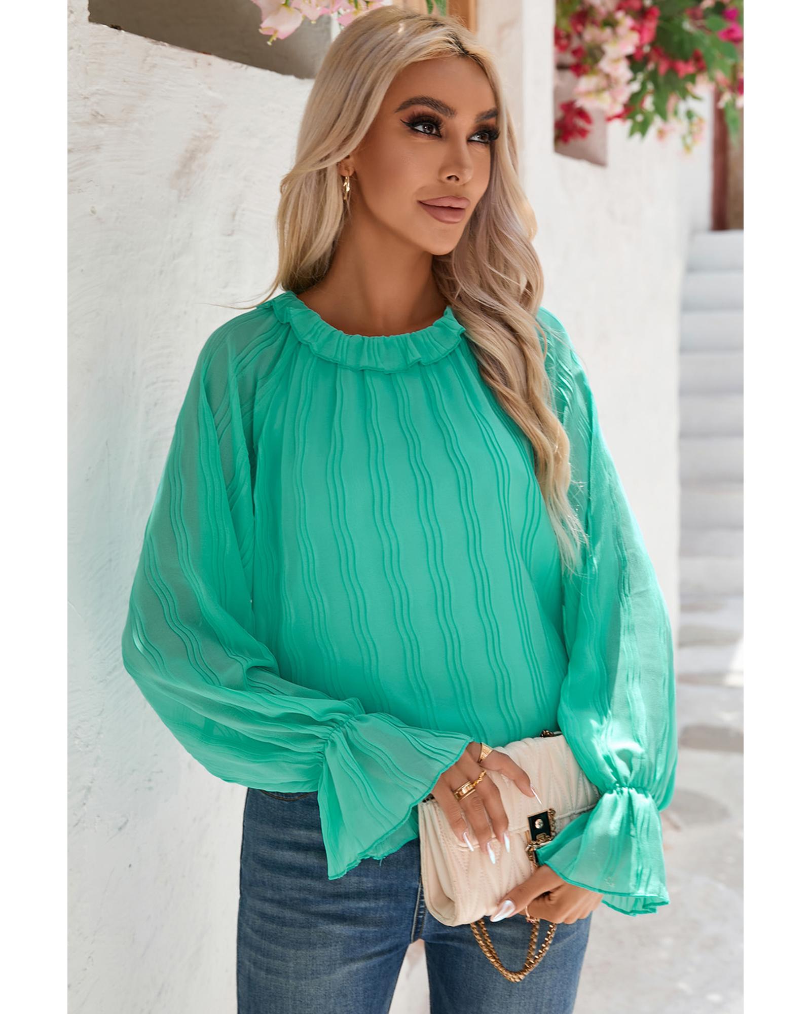 • Luxurious Striking Pleated Flared Cuff Long Sleeve Blouse