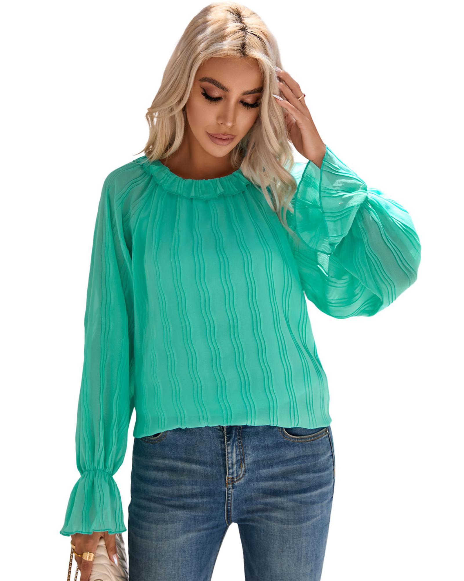• Luxurious Striking Pleated Flared Cuff Long Sleeve Blouse