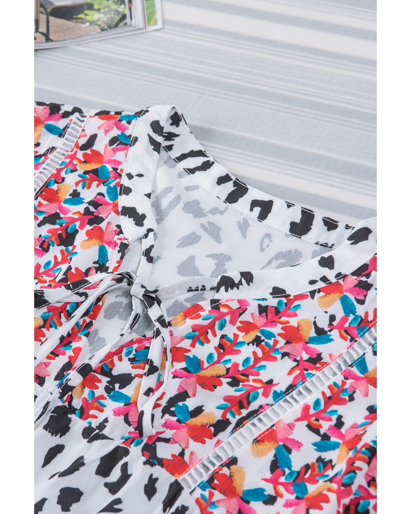 - Stylish and versatile Mix Print Tassel Tie Blouse