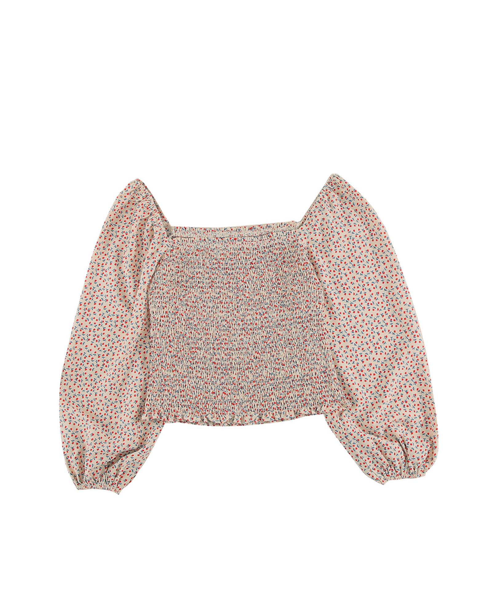 - Square neck puff sleeve floral smocked top