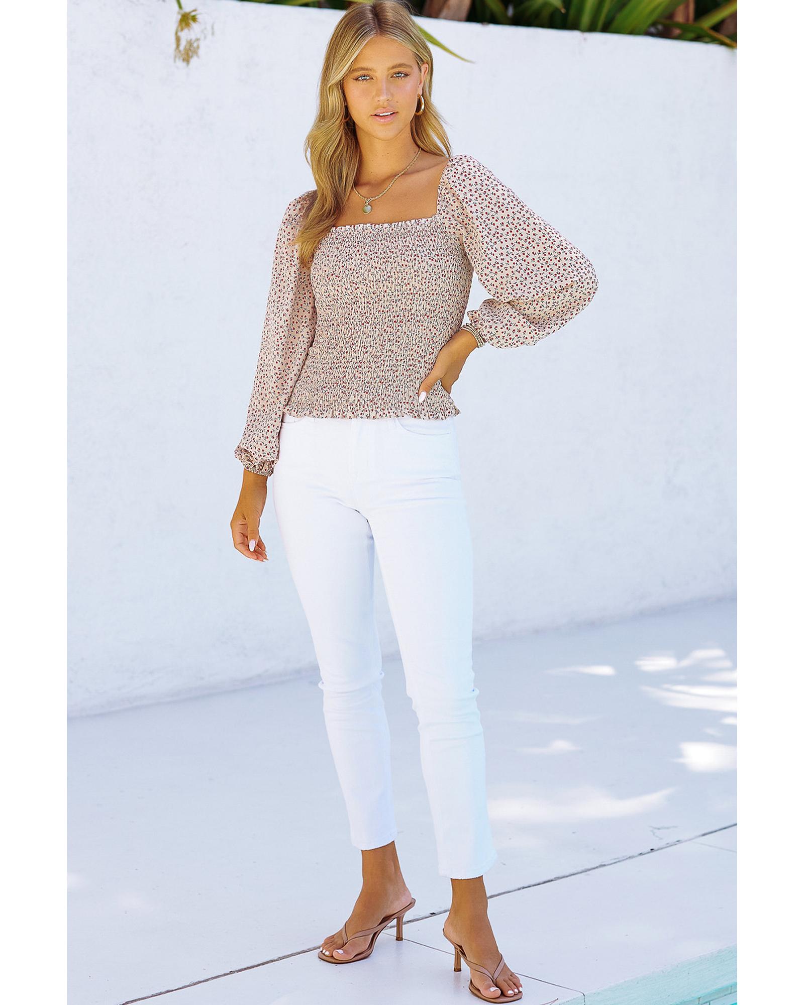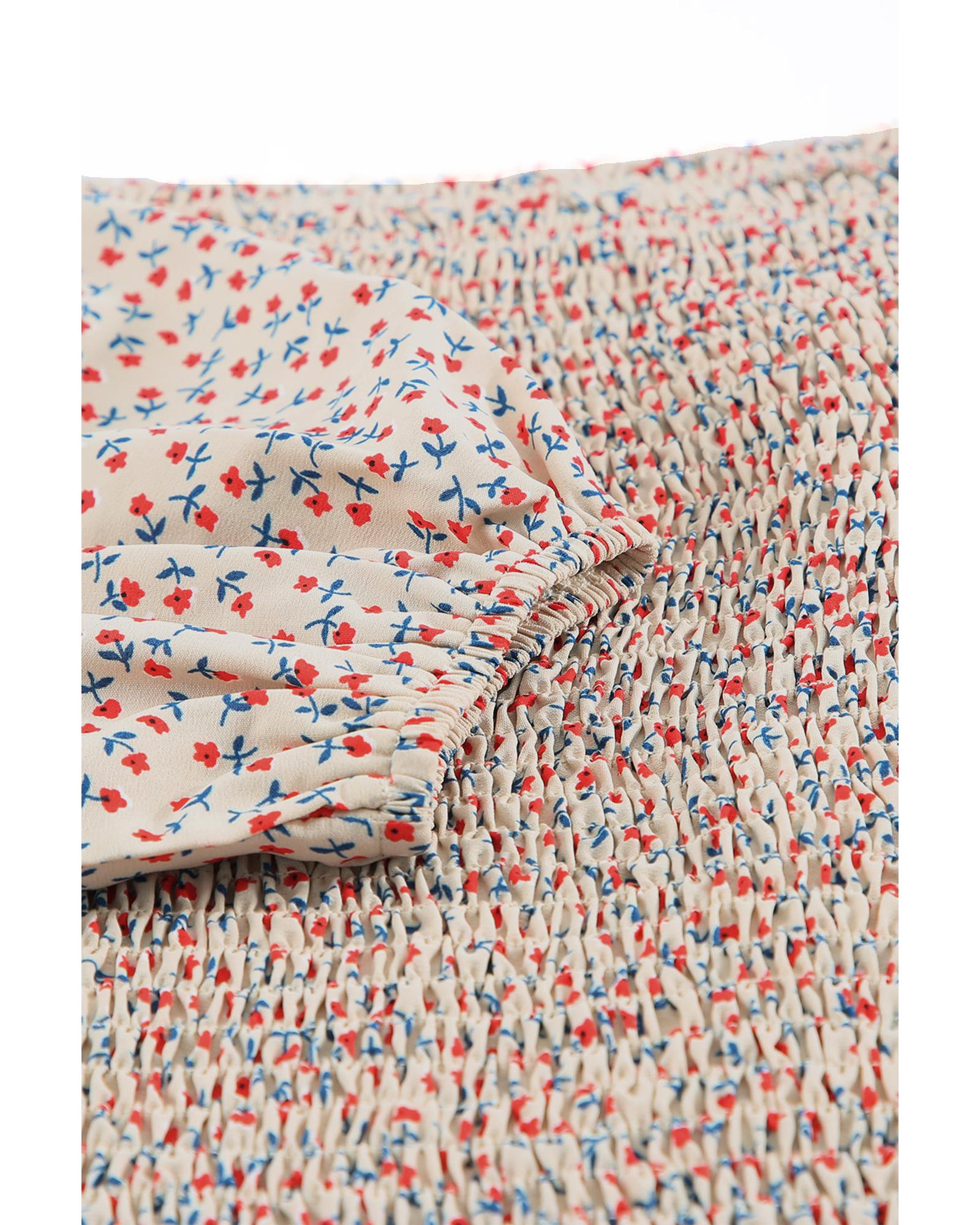 - Square neck puff sleeve floral smocked top