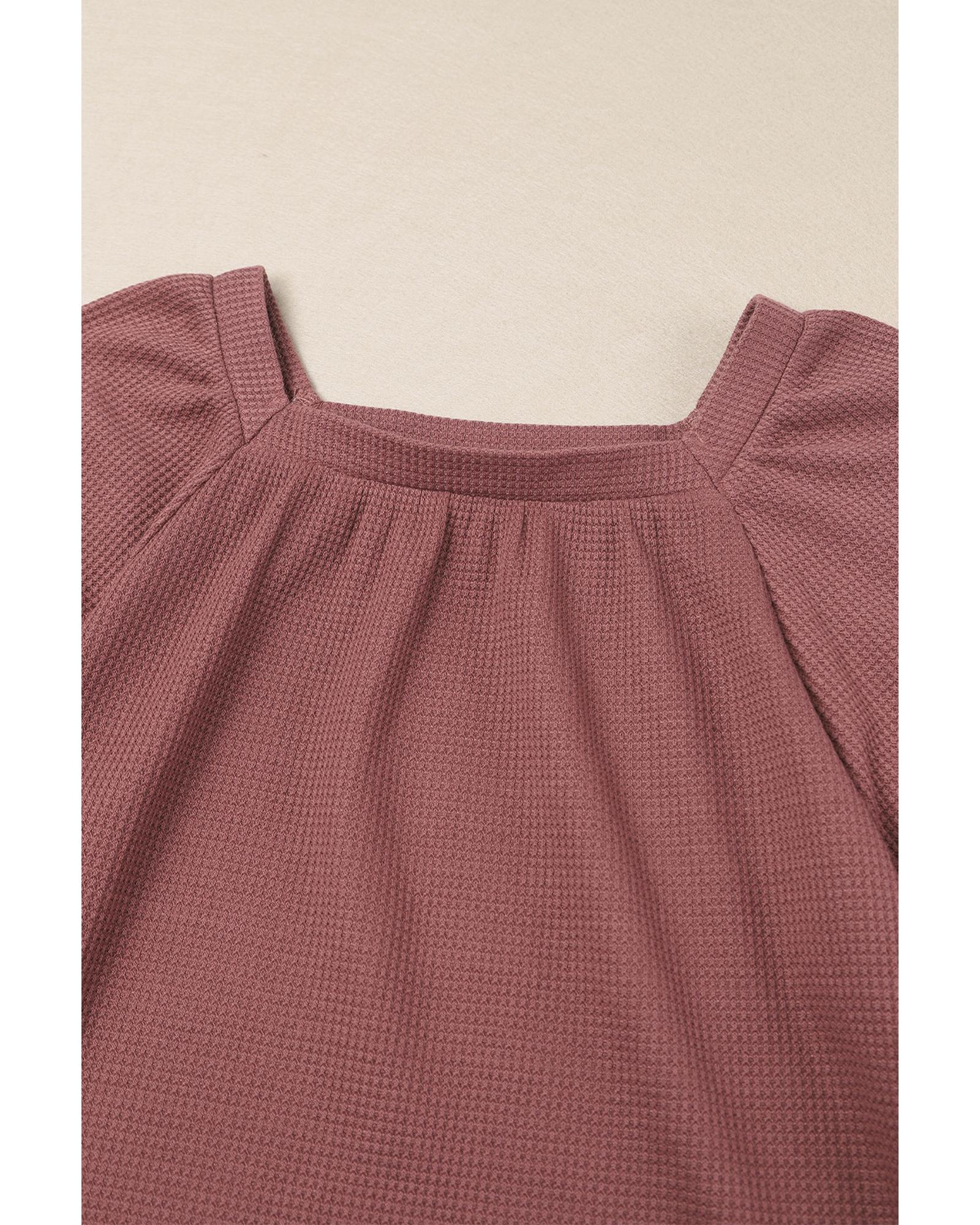 Azura Exchange Puff Sleeve Waffle Knit Top – M