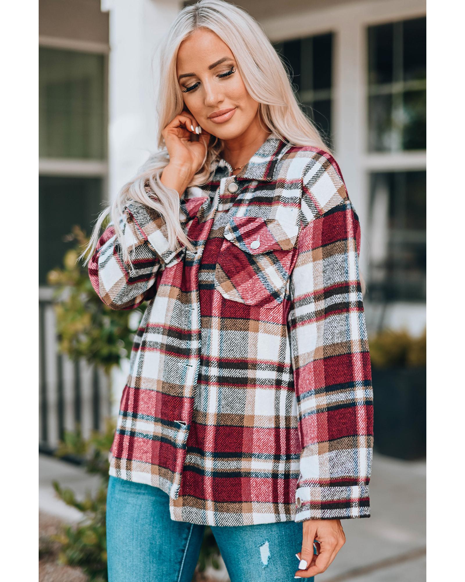 Azura Exchange Red Geometric Plaid Print Pocketed Shacket – L