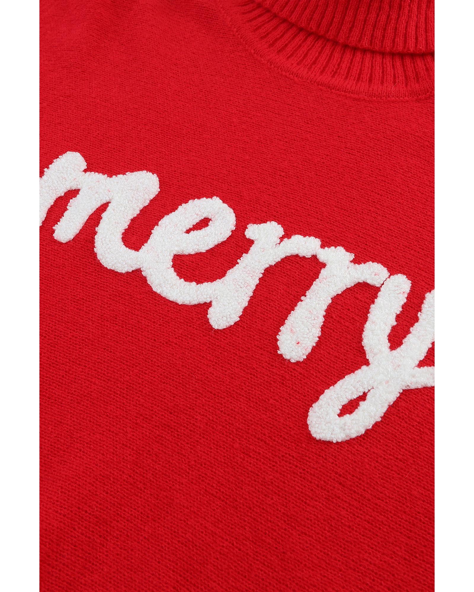 • Red Merry Letter Embroidered High Neck Sweater