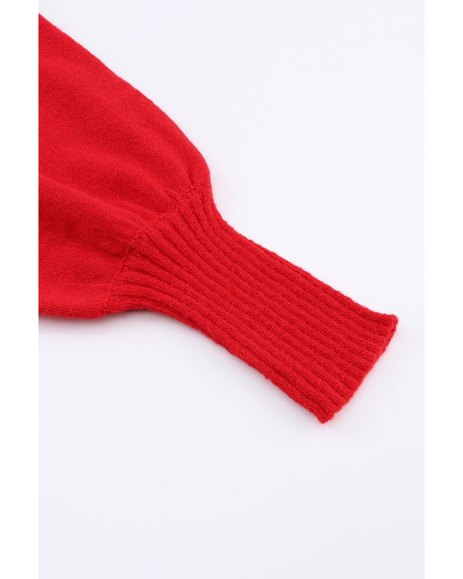 Azura Exchange Red Merry Letter Embroidered High Neck Sweater – M